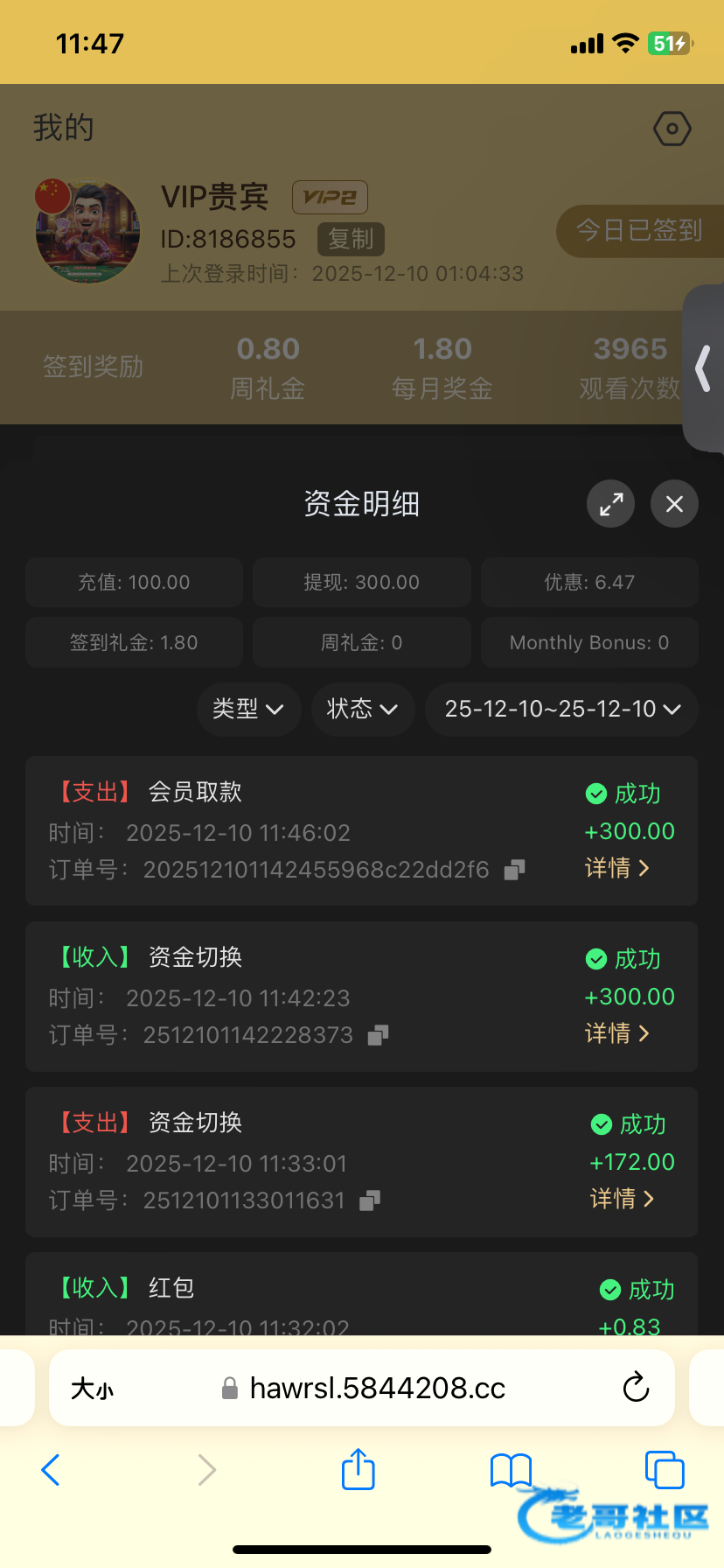 ✅ 论坛晒单奖励 28 元  成功提款老哥论坛晒单,凭截图可再次领取28元彩金。