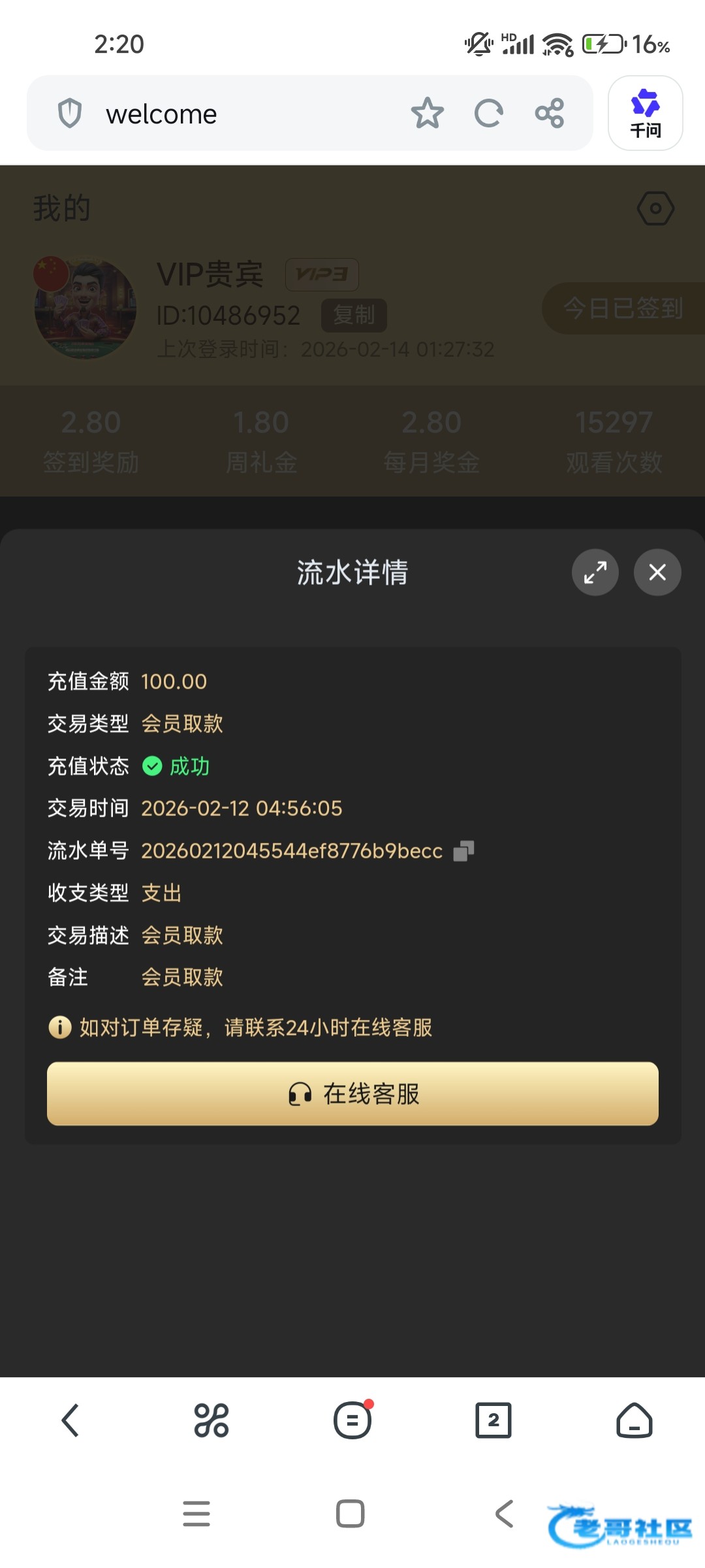 ID:10144413老哥非常稳!领取下奖励老哥
