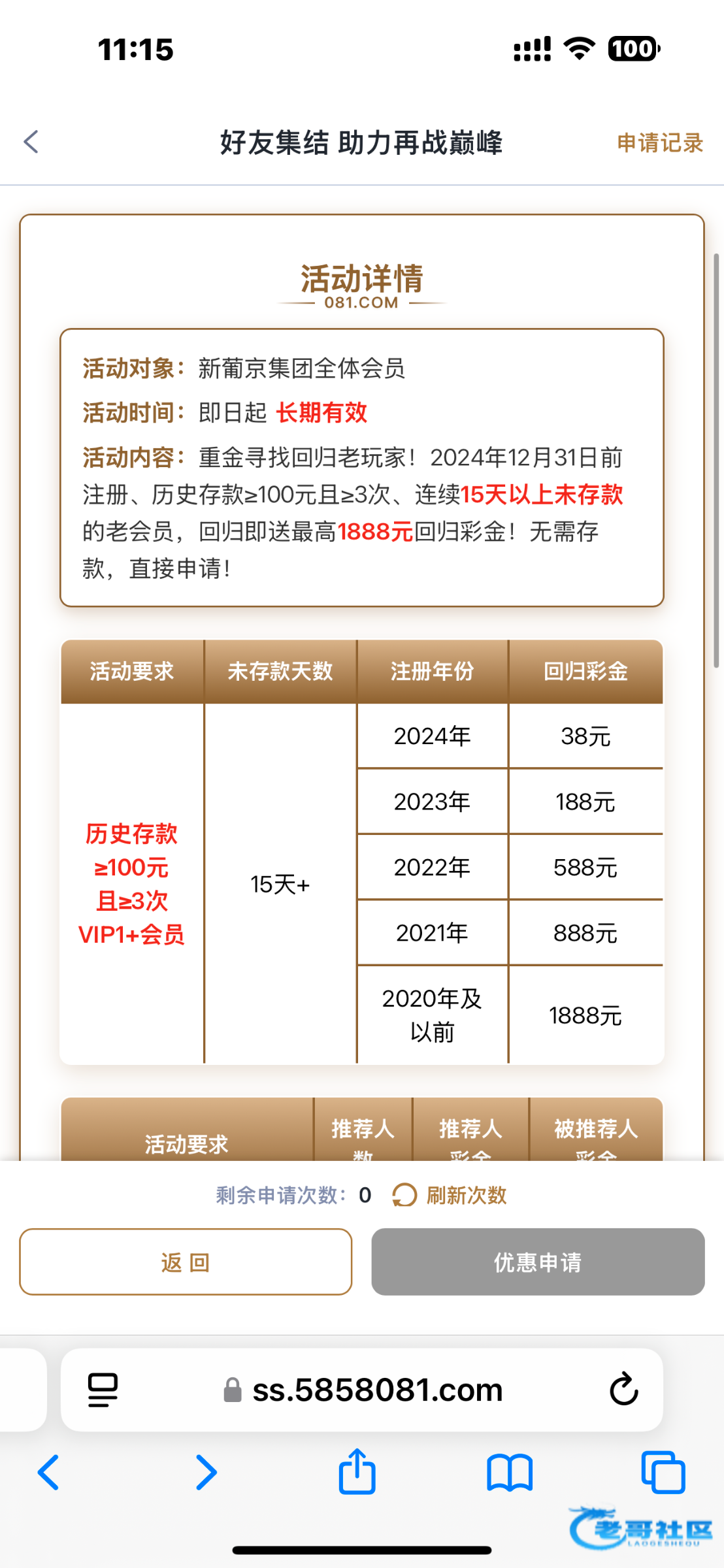 081改版了界面 之前领过这个豪礼的可以重新申请继续领 要看清活动内容 之前申请过的还能申请一次链接081.com