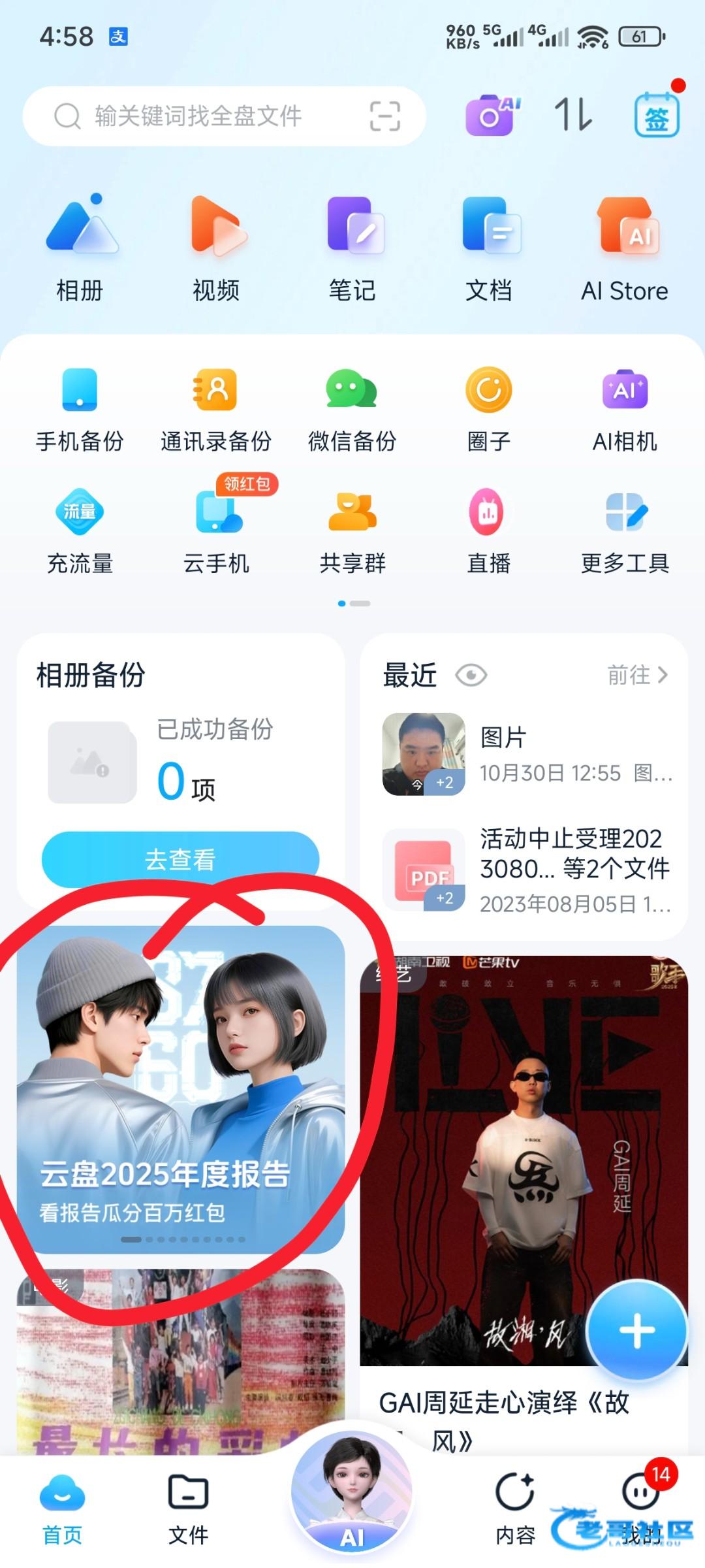 应用商店搜索中国移动云盘年度报告抽奖