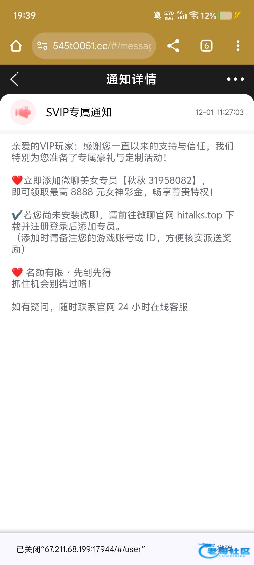 我是前段时间充值过老号 今天收到了站内信 联系聊天室客服送了18彩金 545.cc