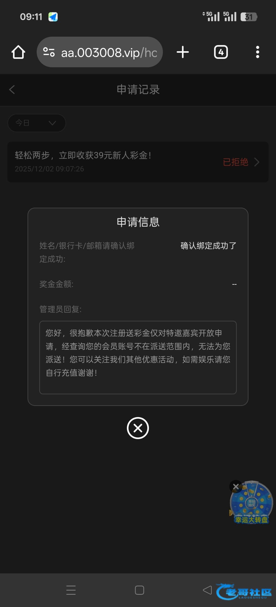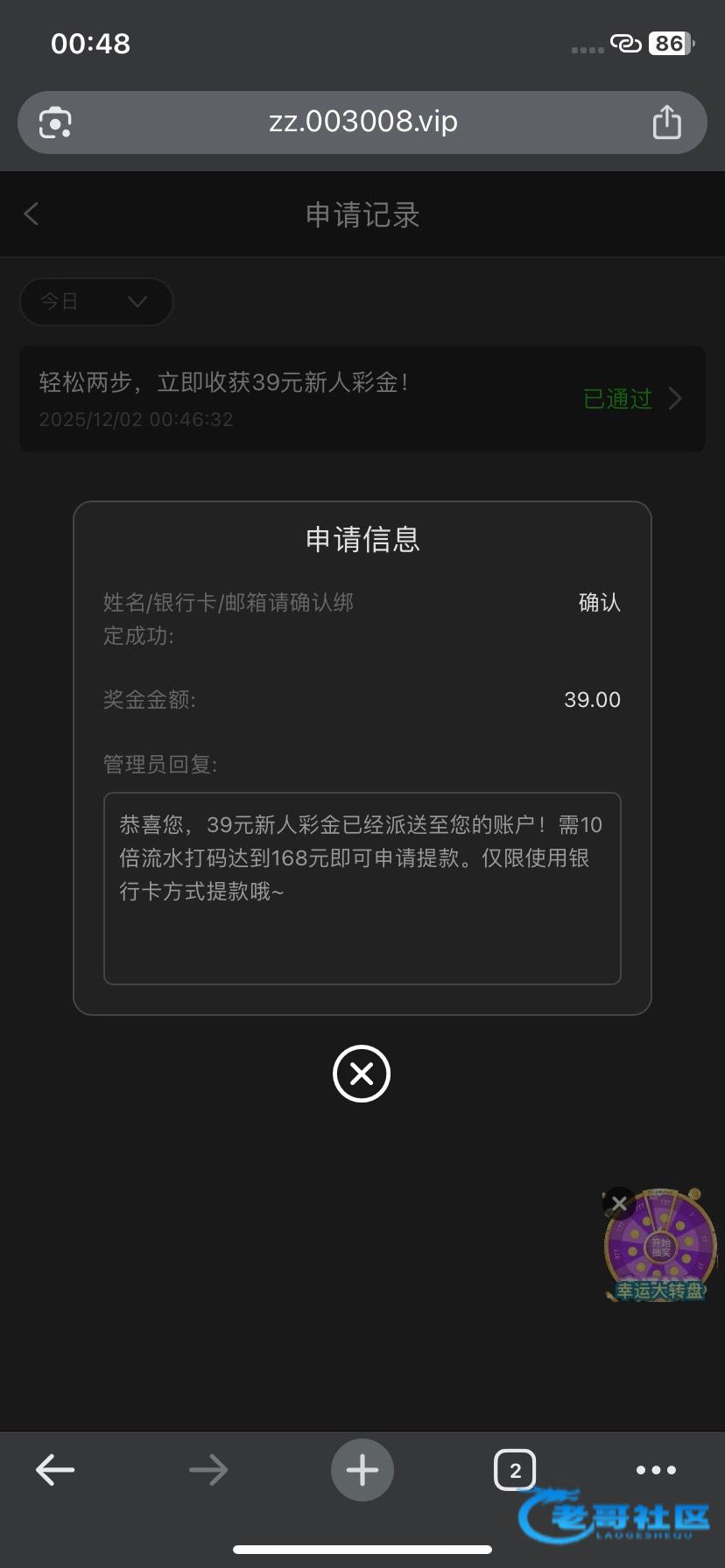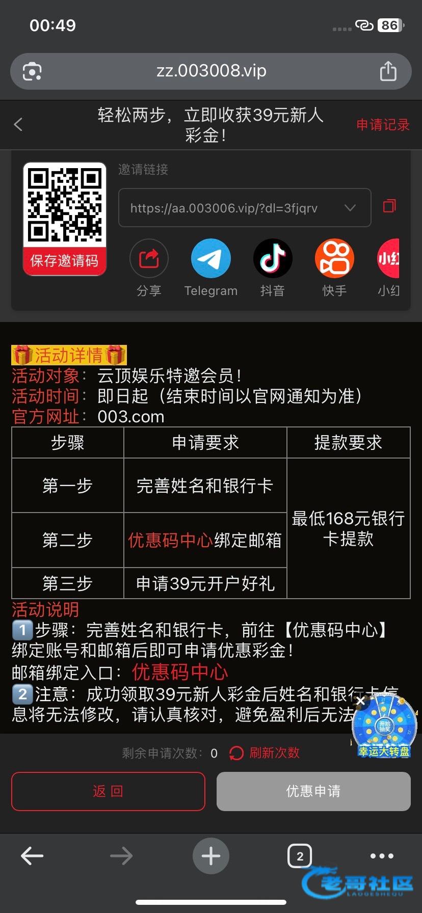 自助彩金39 特邀网址988756.icu 官网003.com 注册先去安全中心绑定手机号跟邮箱 再绑定银行卡 然后去优惠先绑定邮箱 再申请 最低168提现 只可以银行卡 我三个账号都领取到了打出来了一个