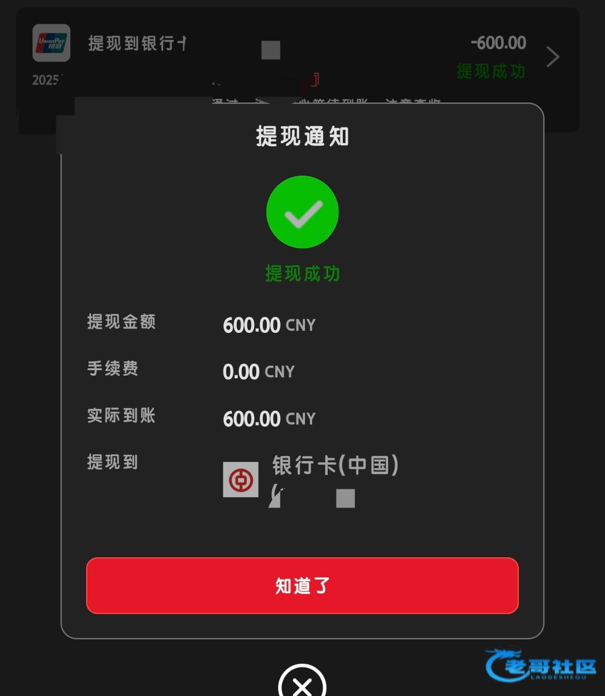 提了600,到账了领的39,可惜提的中国银行,直接风控了,要等几天才能用