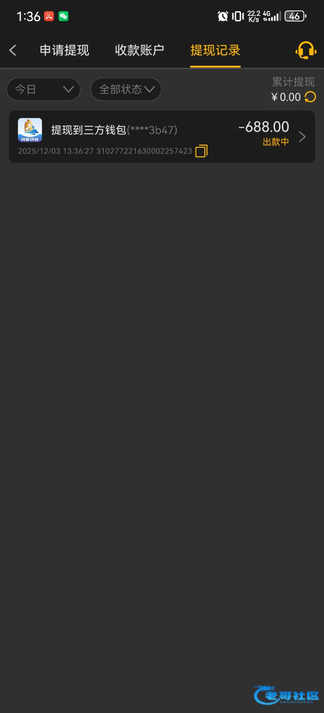 跟你一样3点多提现的,随机黑