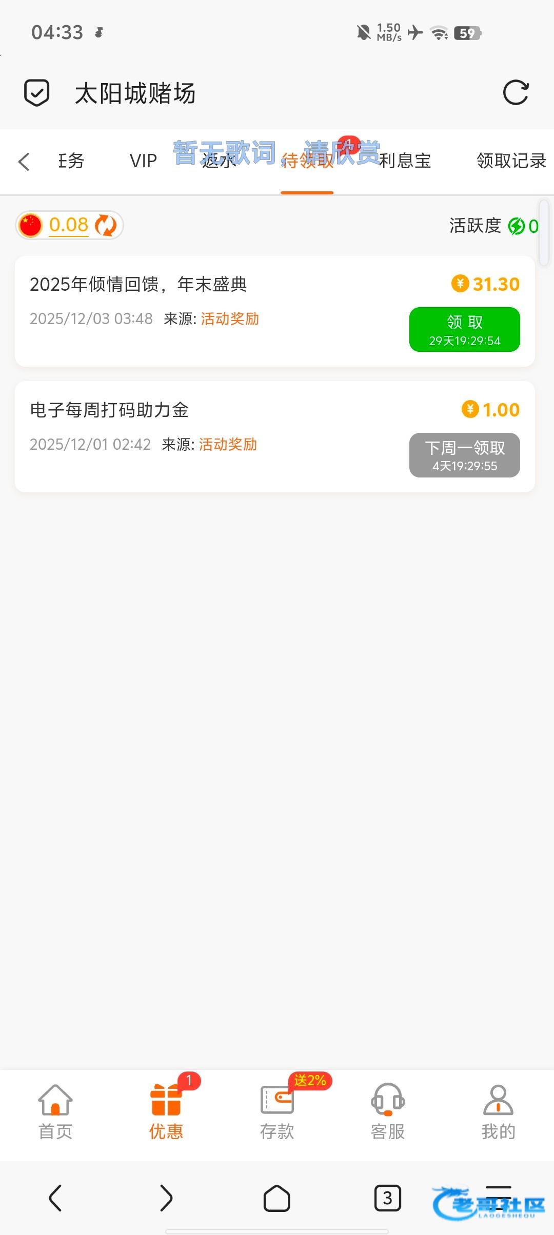 有号的老哥可以登上去看一下,5555a88.cc,70.cc,4444.cc,0087这几个都有,领取要三天内充值50才能领