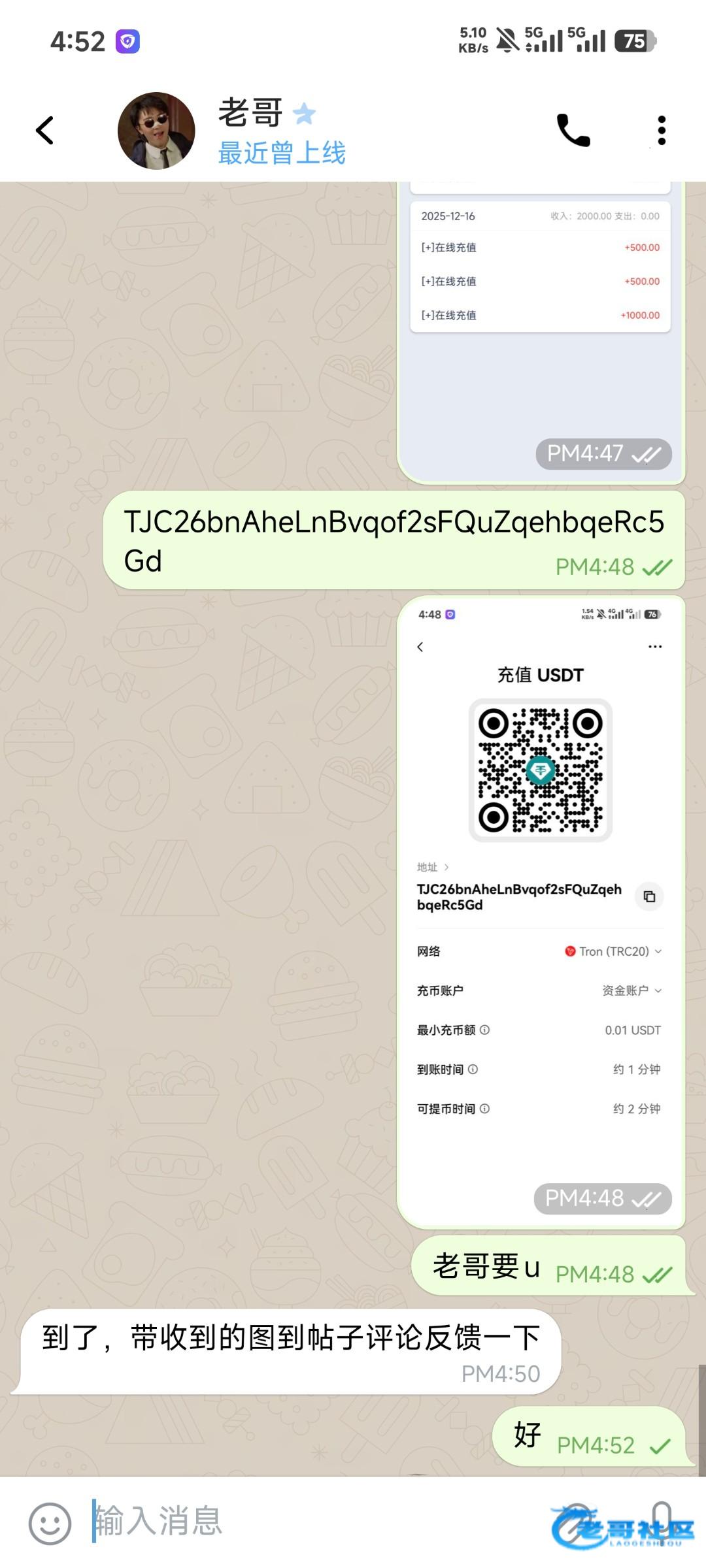 老哥返现到账
