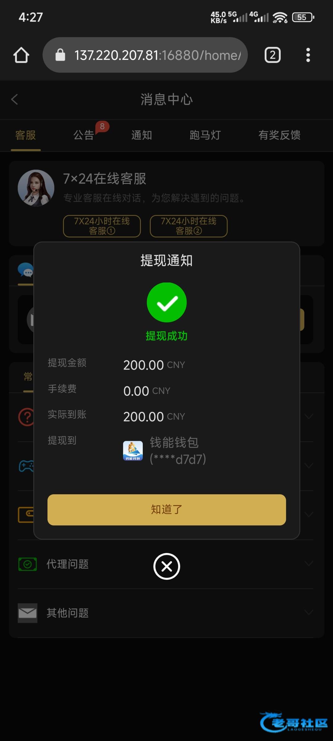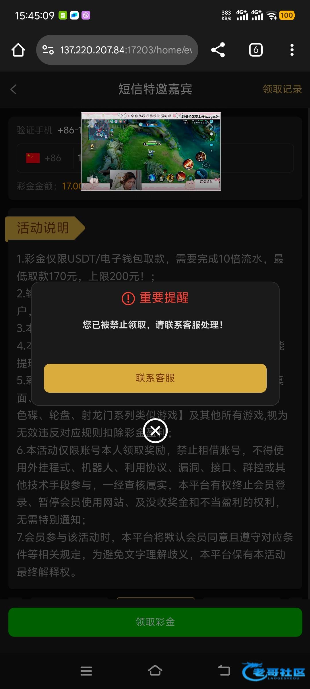 这个垃圾黑网 我1号领了17 输的剩0.04 然后领了1块钱返水没玩 今天玩打到1百不给提款 让充值
