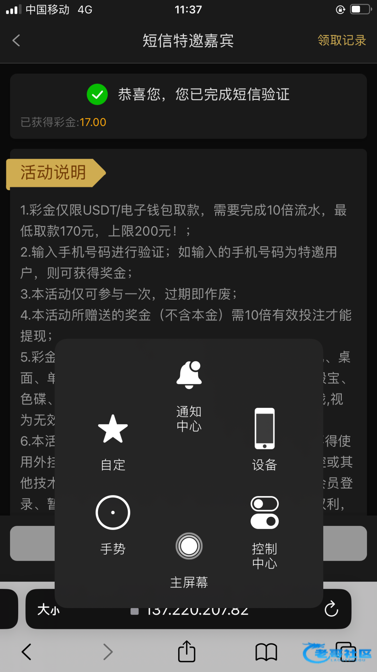 刚收到短信,优惠里面特邀自助领取17,我没打出来,可以去试试短信链接:https://rgshkbz.com/wkvh