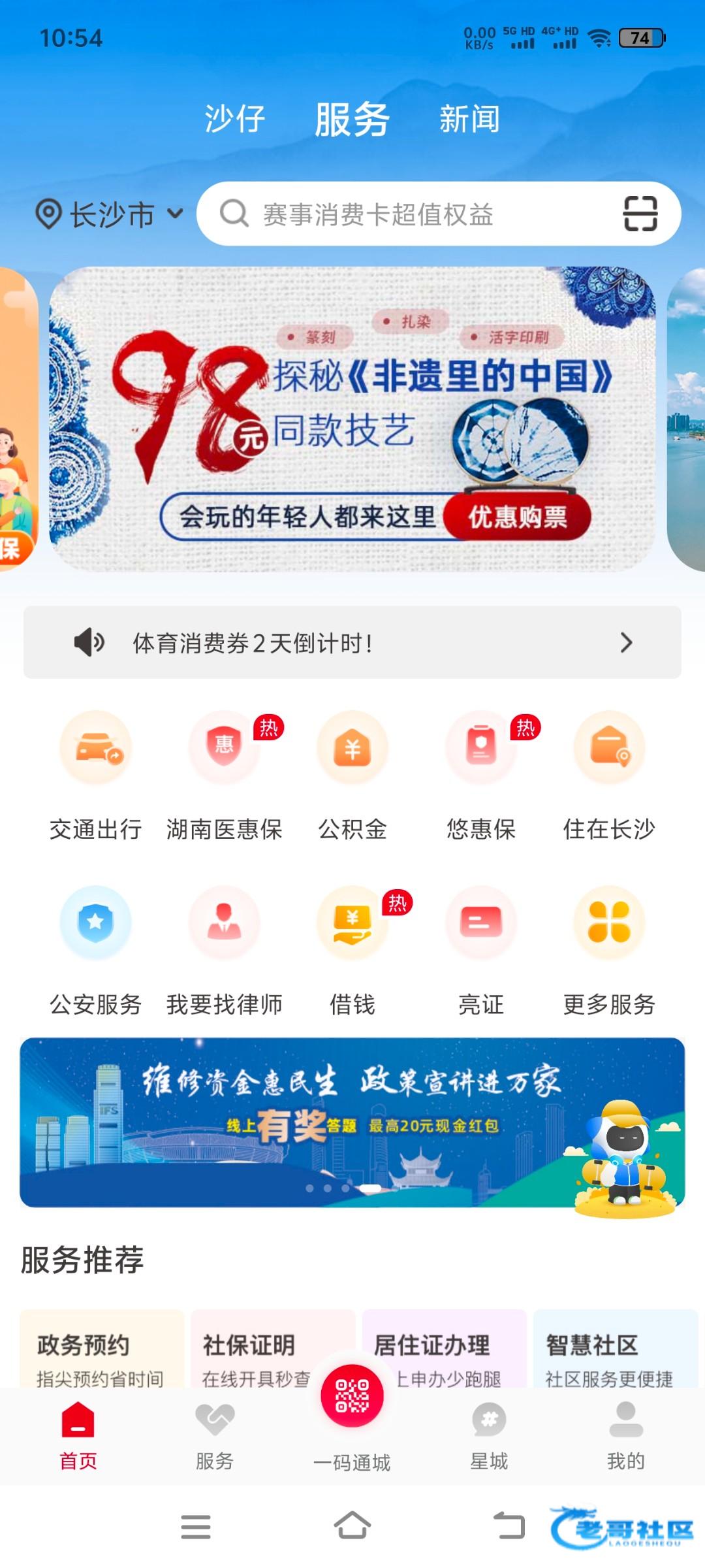 应用商店下载 我的长沙 实名首页中间右翻,最高20,我中了5