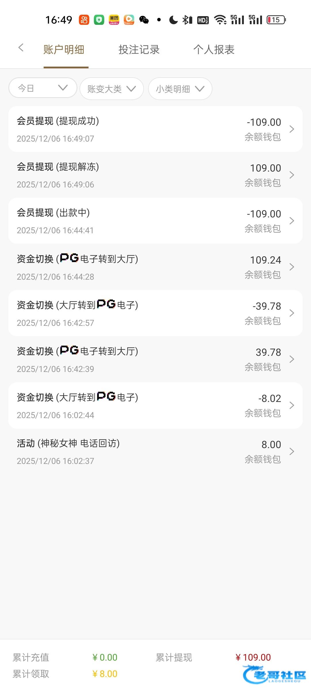 出款情况:自测(