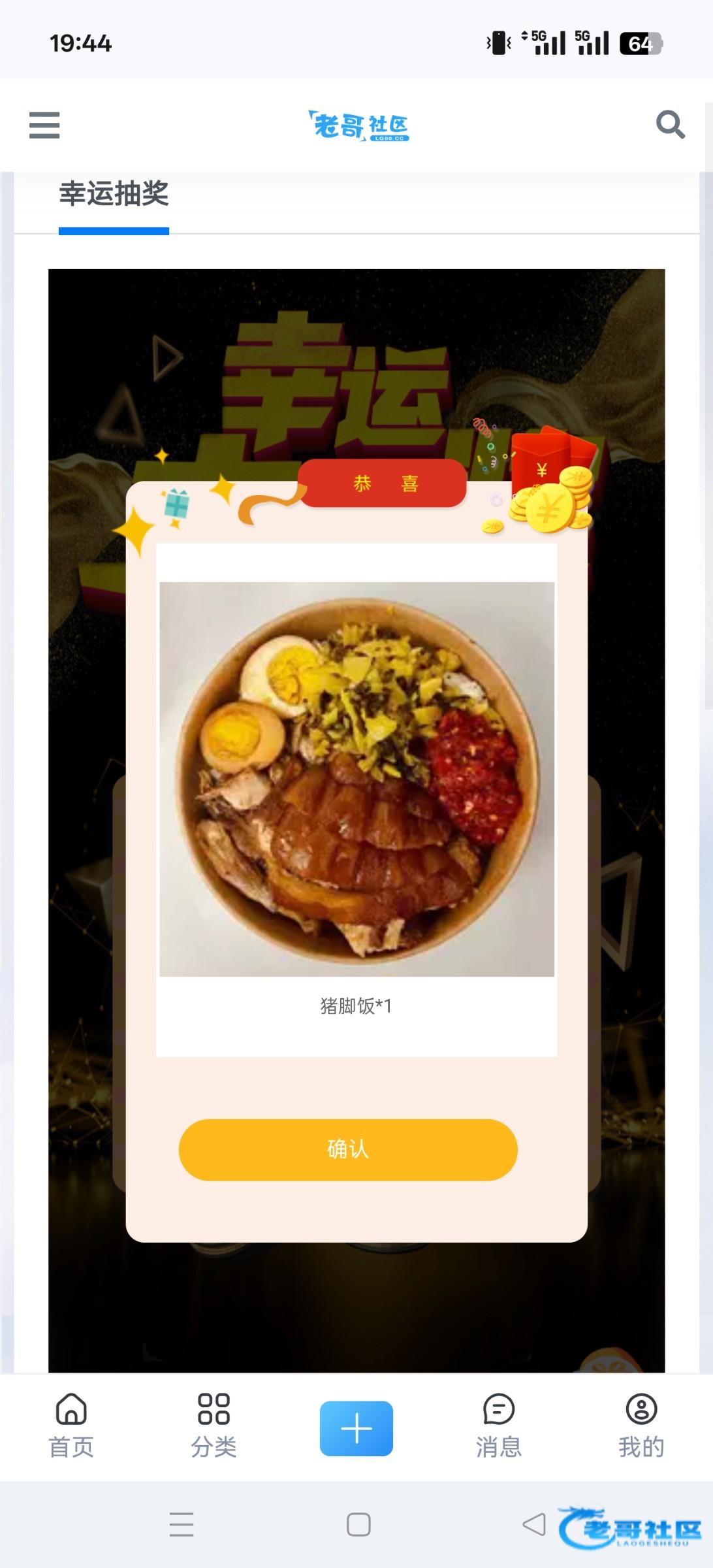 来论坛好久 都没怎么签到 刚好有30金币抽了个猪脚饭