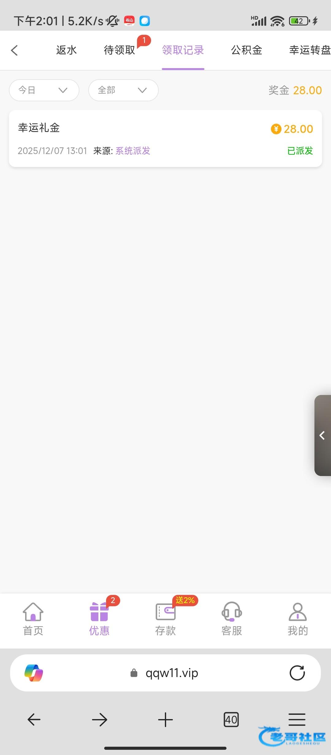 昨天领了28,今天又有18