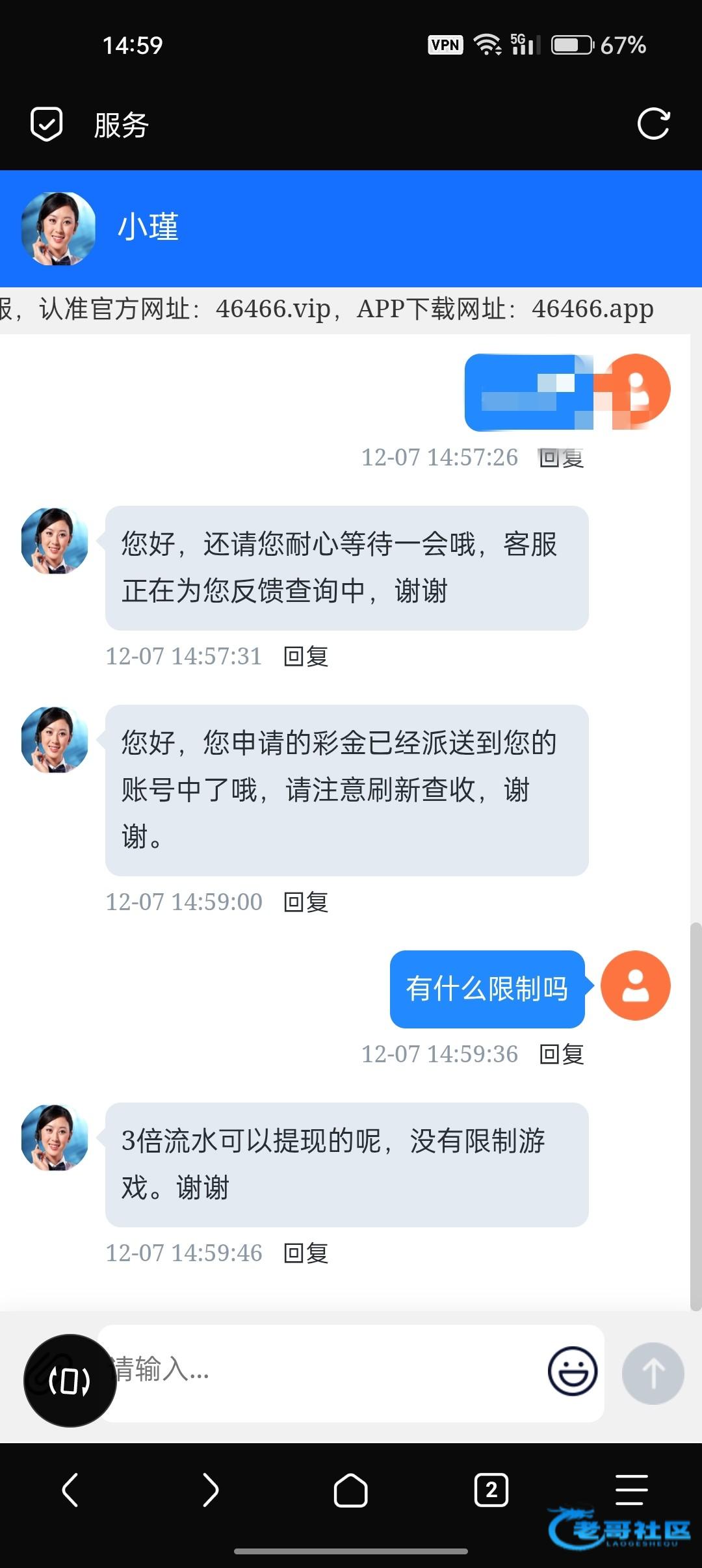 助理有效。。找客服给了58 真人梭哈三把提现到了