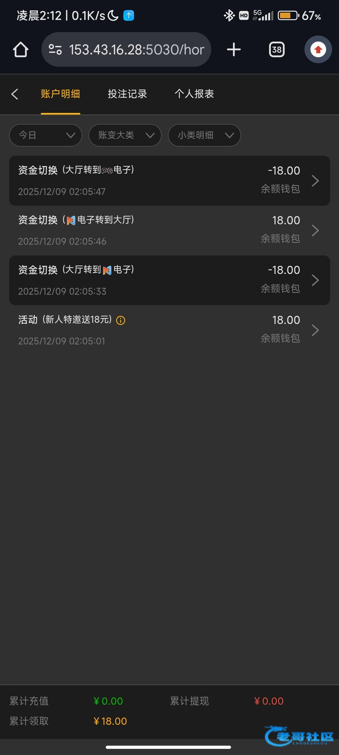 这b台子打电话给我说送彩金,然后登录了,雀食送了1块8毛8给我气笑了