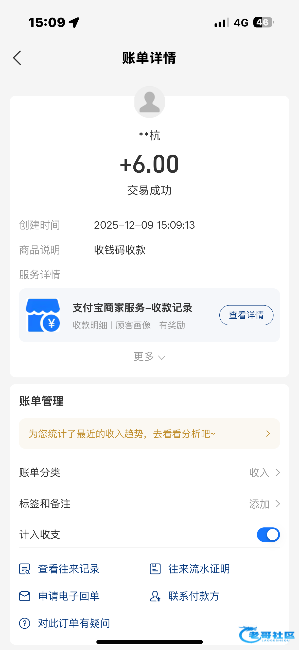 收到老哥