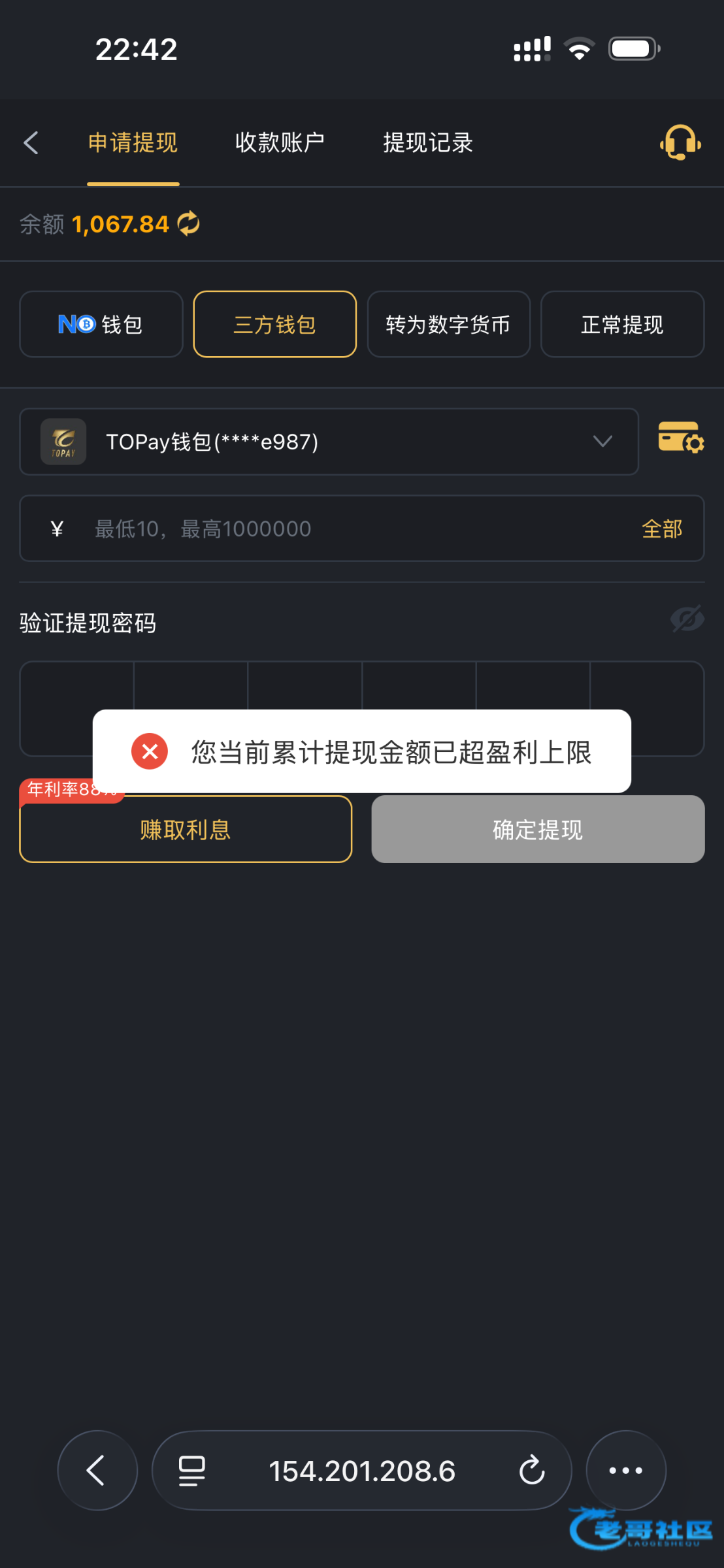 这样,你留108。把多余的钱都拿去买低频彩票,过两天开奖那种,比如六合彩。提现之后,再充点钱回来,把彩票单撤销了。成了安排个猪脚饭吧。