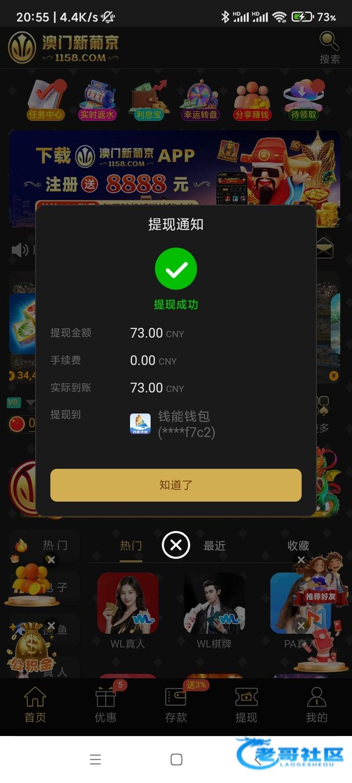 果然大水,充值100半个小时不到就提500