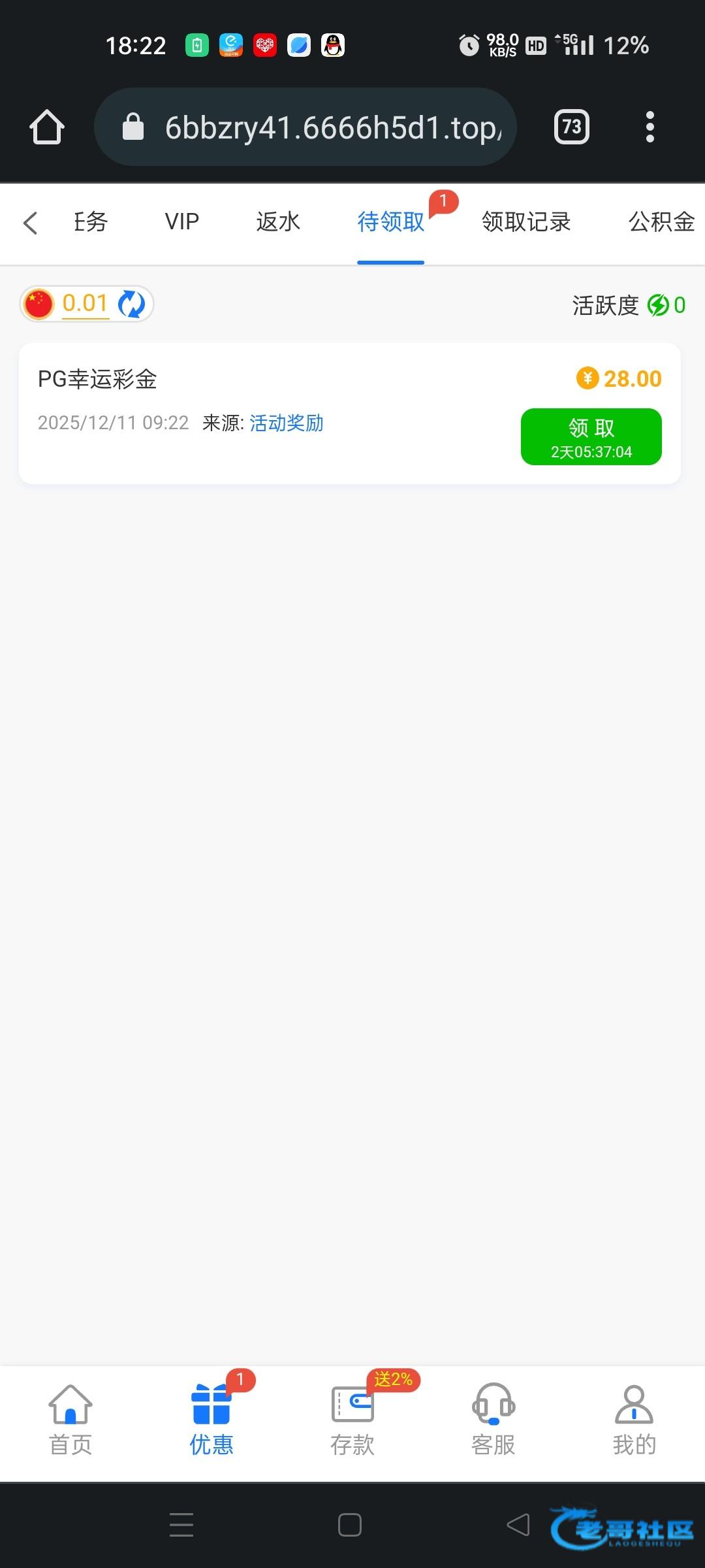 送28网址:6666.LV 登录上去弹窗领取 我充值过 有就是有,没有无视即可!半黑