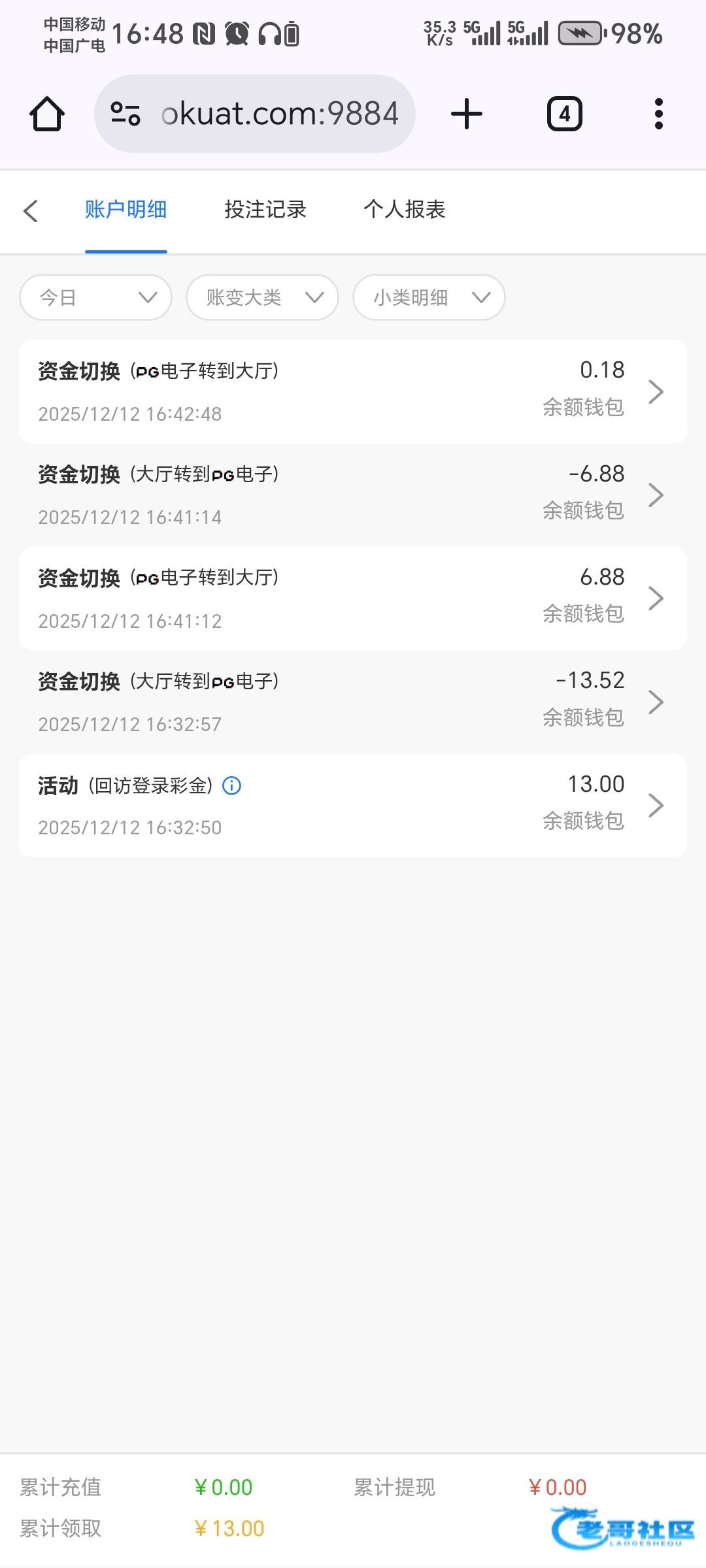 @yuyu89 ,现在哪个台不杀这垃圾平台彩金就故意给爆,两次了反正只给188充值没赢过