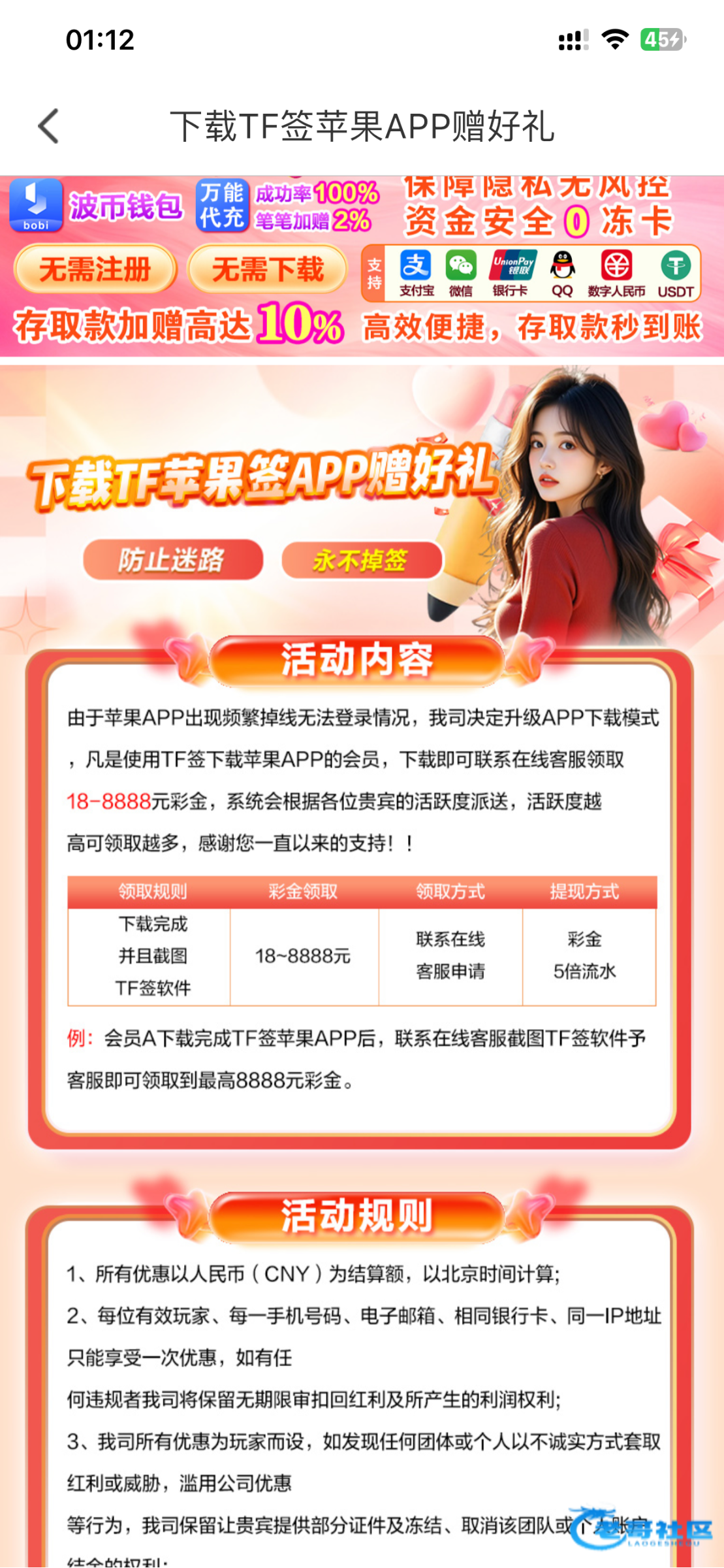 别泥马发了这畜牲台打电话送18去了就是账号没激活 充100领取