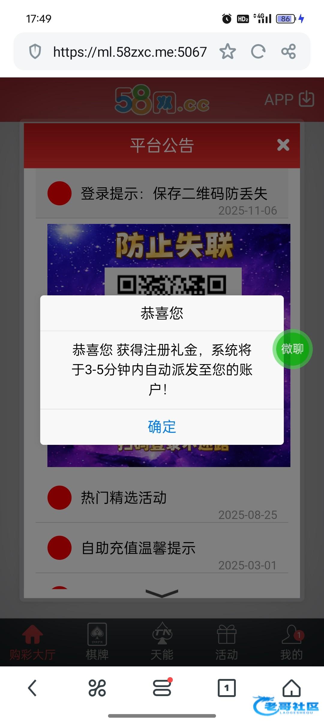 进是进去了,显示注册礼金3-5分钟到账不知道会不会给