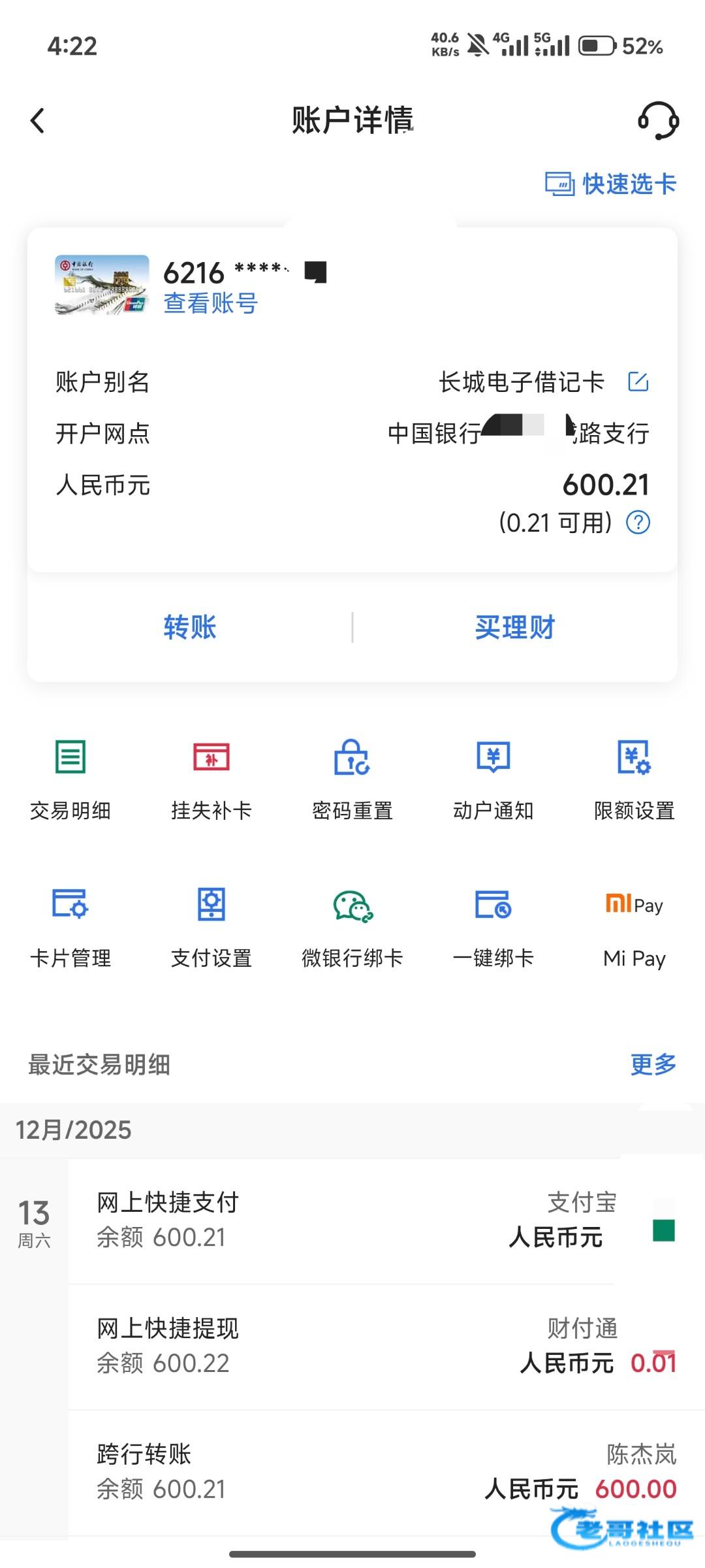 早上球盟会充了300,红了1k,然后那个账号手机号我不在用了,所以只能提卡,拆分了提款订单,先是一笔600,这600进来就秒冻结了,但是银行卡账号没问题,只是单笔冻结,有没有吊大的知道这是什么情况