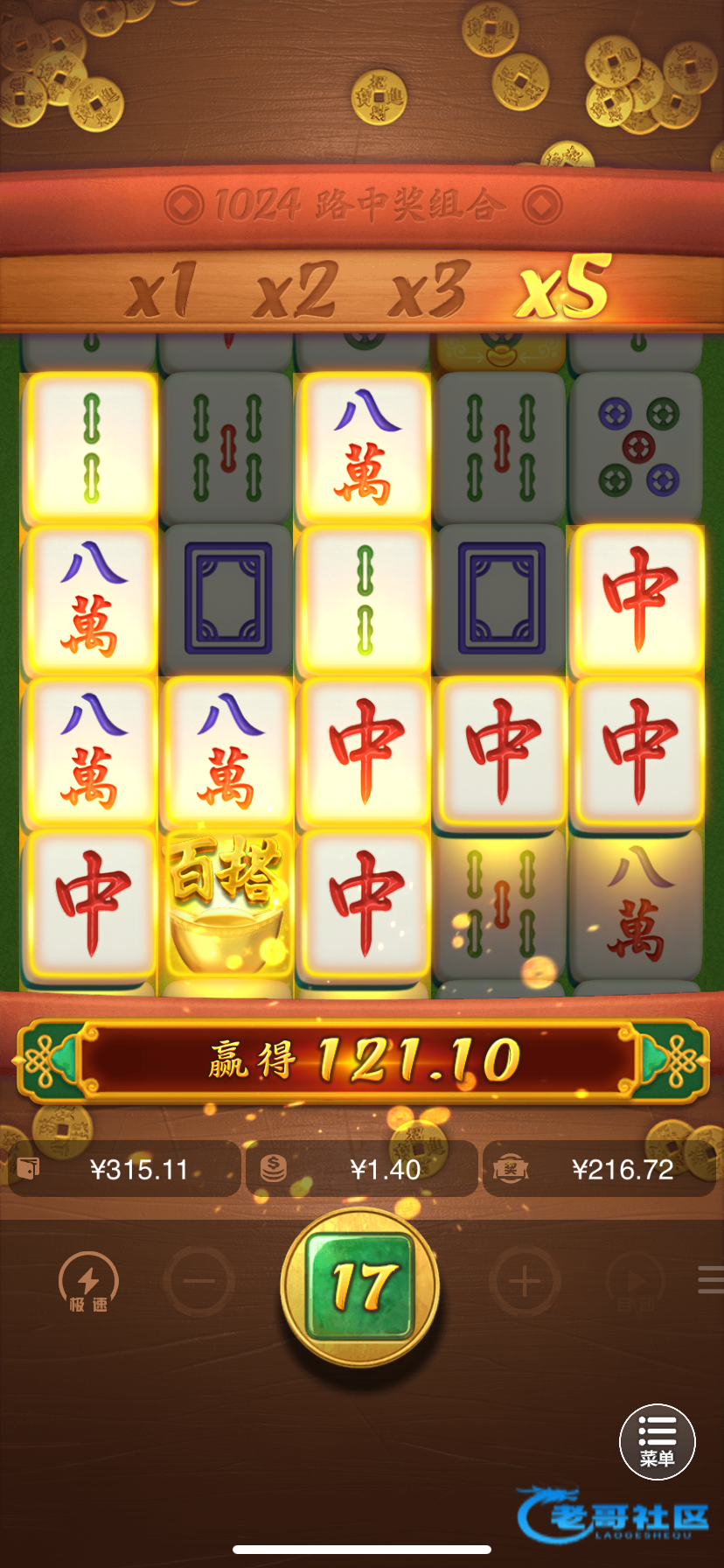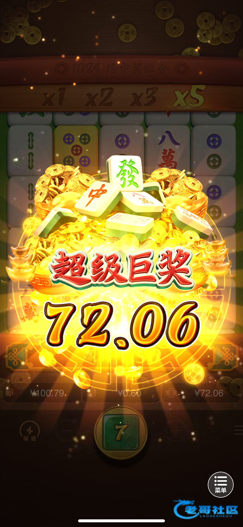 第一次0.6平拉给了79块钱 后面加注1.4进来一次给了78 然后就平拉给了5倍红中