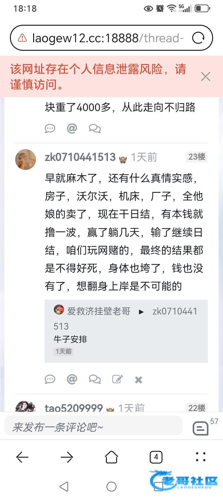 早就麻木了,还有什么真情实感,房子,沃尔沃,机床,厂子,全他娘的卖了,现在干日结,有本钱就撸一波,赢了躺几天,输了继续日结,咱们玩网赌的,最终的结果都是不得好死,身体也垮了,钱也没有了,想翻身上岸是不可能的