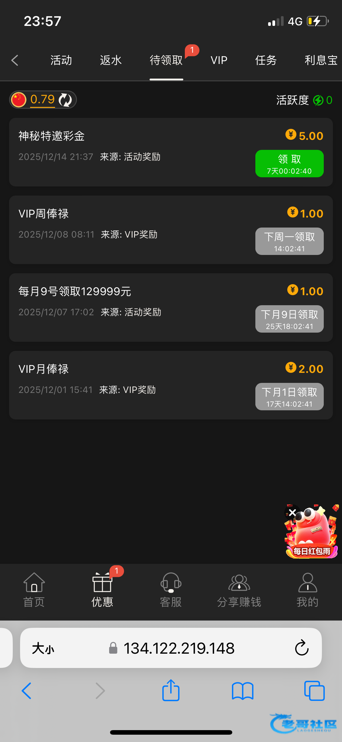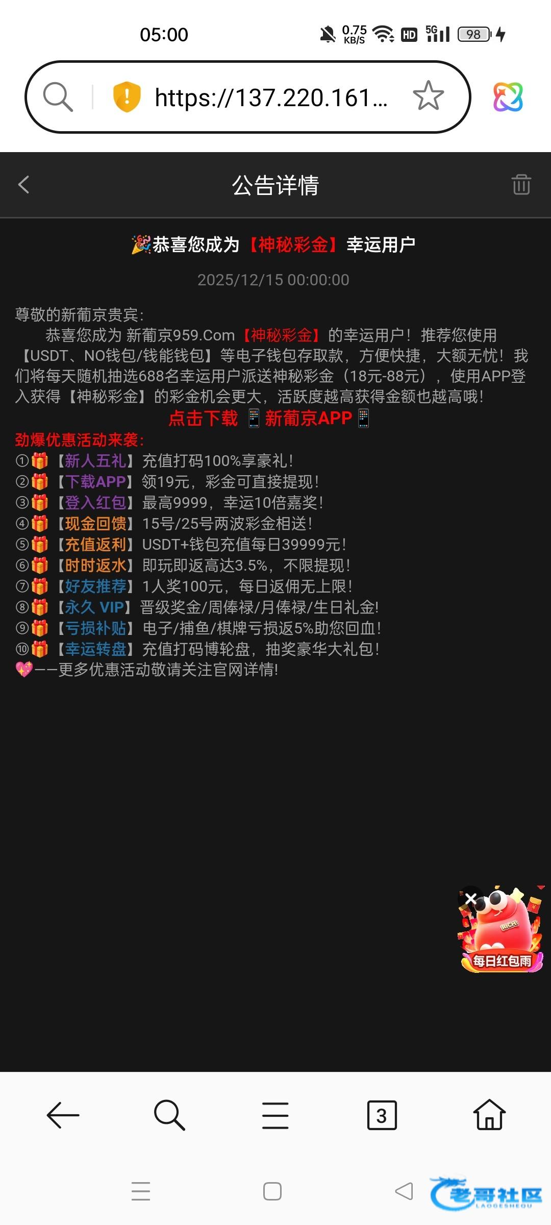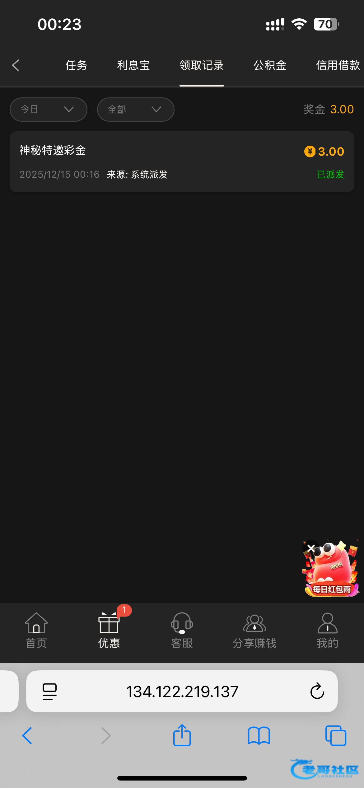 这傻逼平台发了公告说中了神秘彩金,结果一毛没有