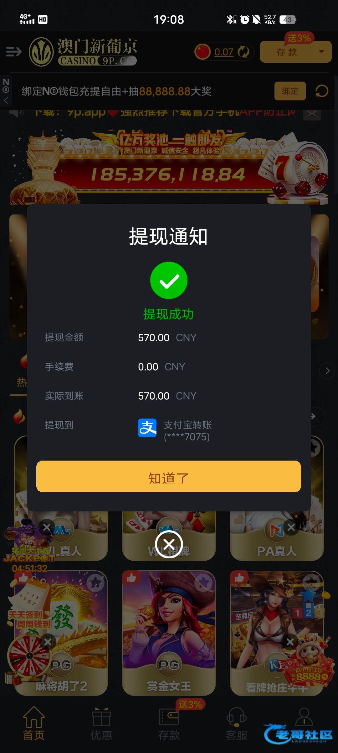 一分没有充 领了9块钱出了160 然后充50赢了800