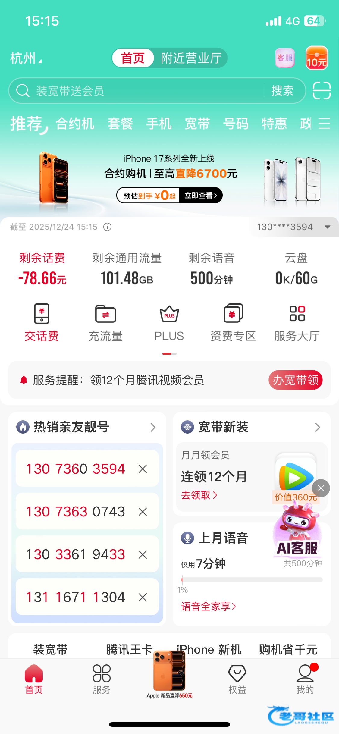老哥申请挂壁话费,过了7天就停机断网了,申请一个老哥