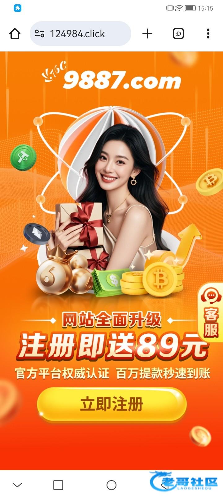 注册送89需要绑定手机号码和银行卡号码一致,我是被拦截跳转过去重新申请的,9887c1.com