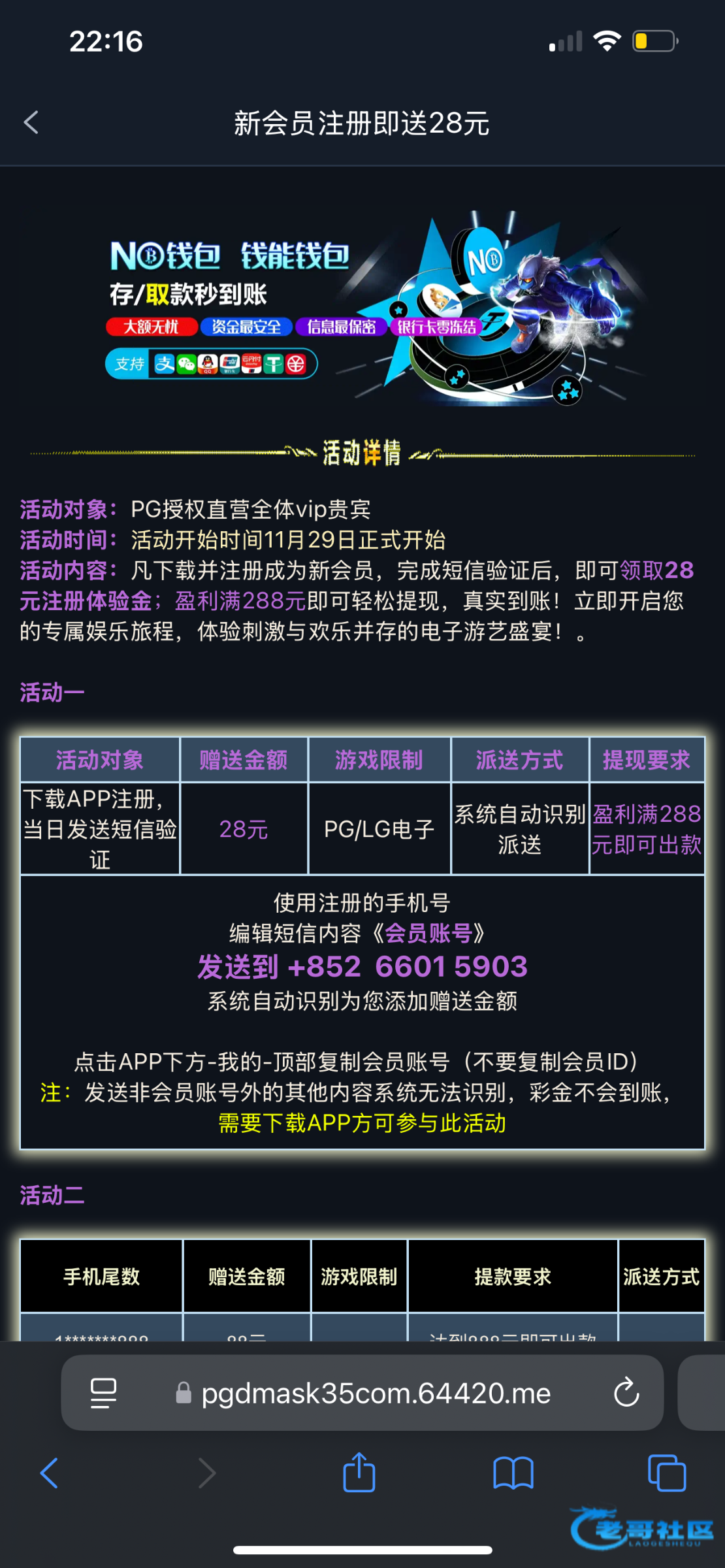 下午收到短信去发了也没有,去问客服就说注册活动结束,这种煞笔台子你自己都不敢试,发出来是让大家中出尼玛