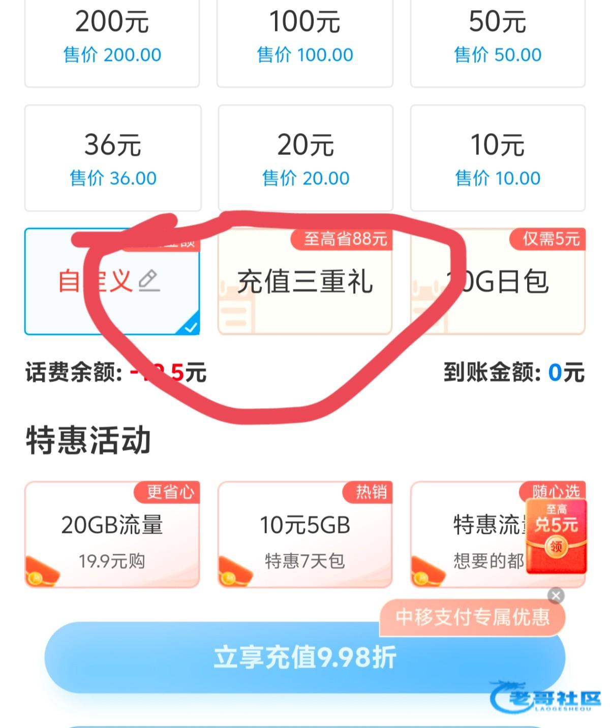 可能是我手机刚欠费了?反正我这里能自定义充值