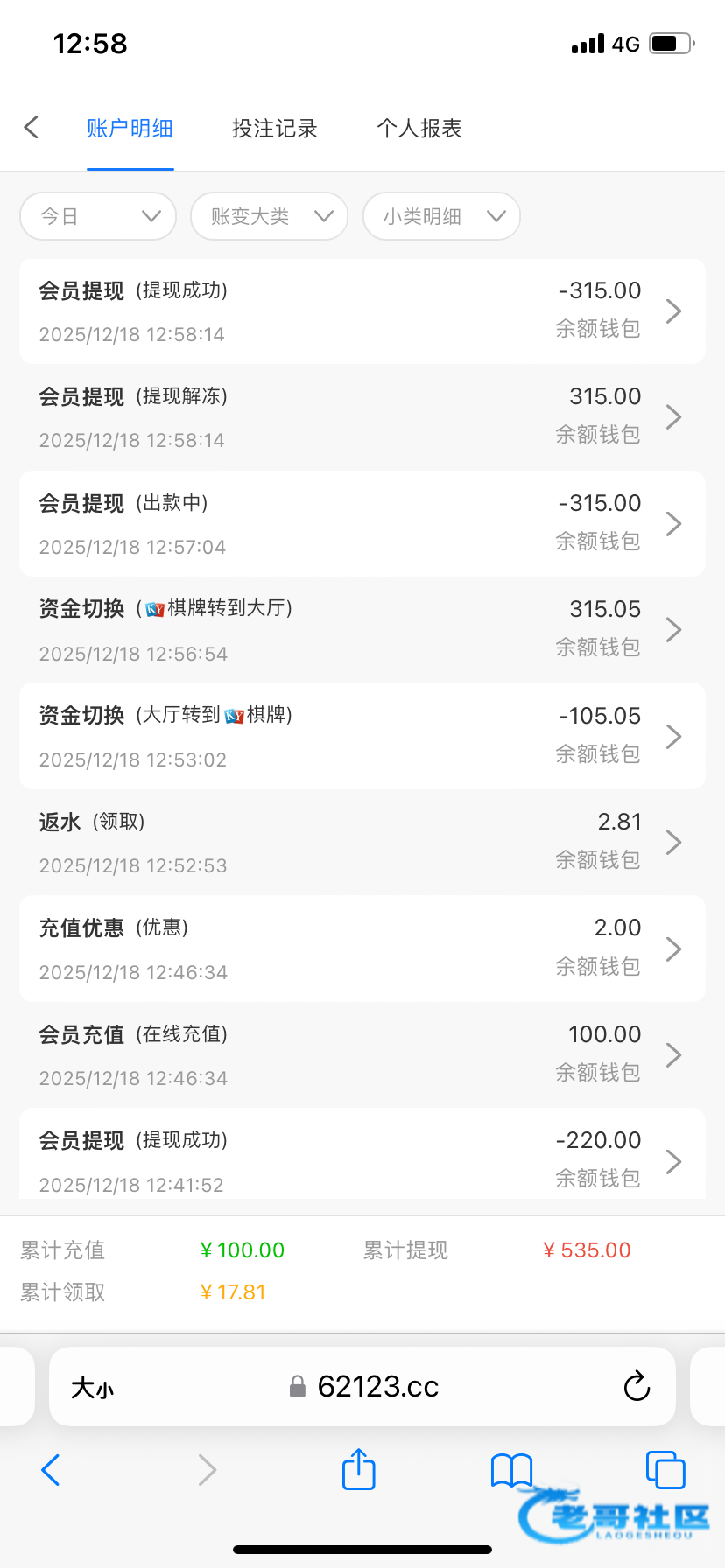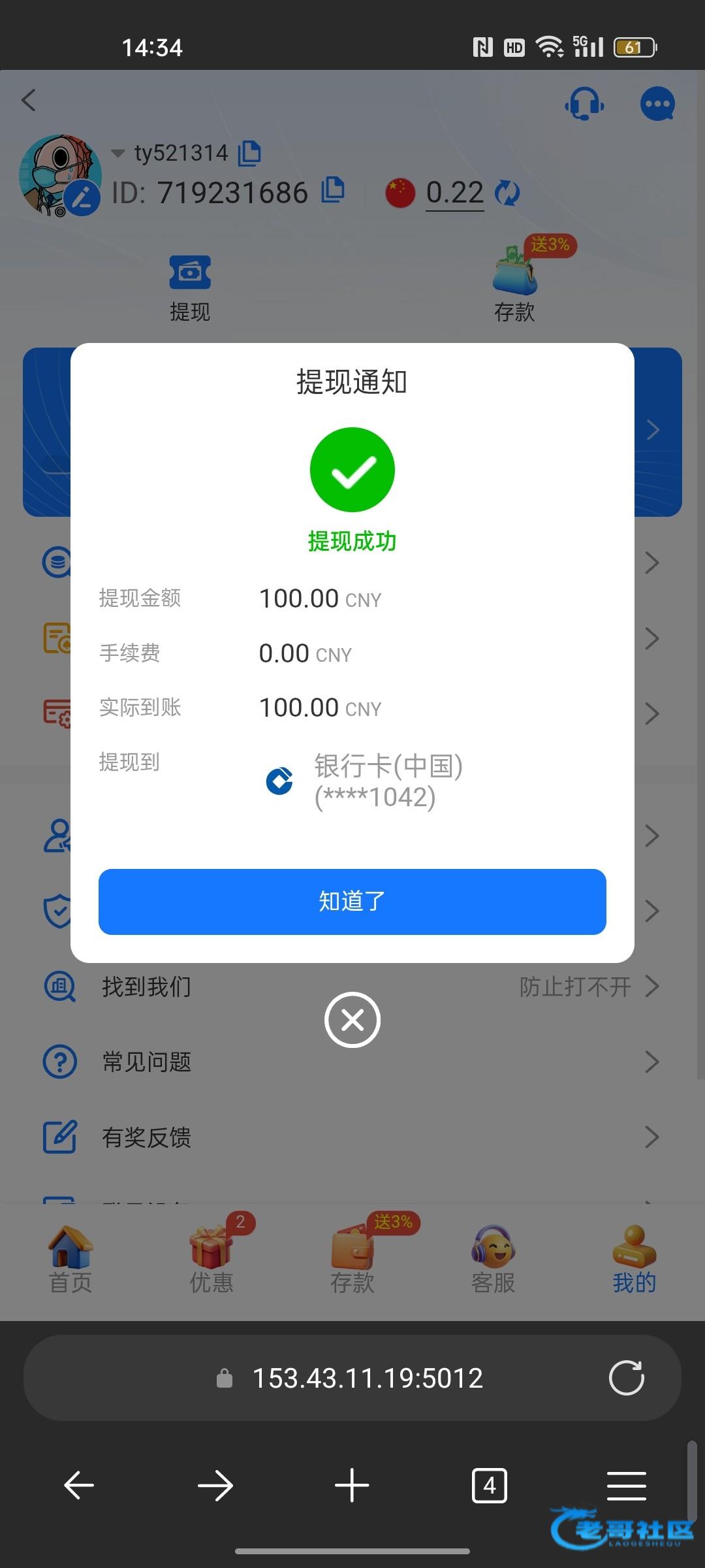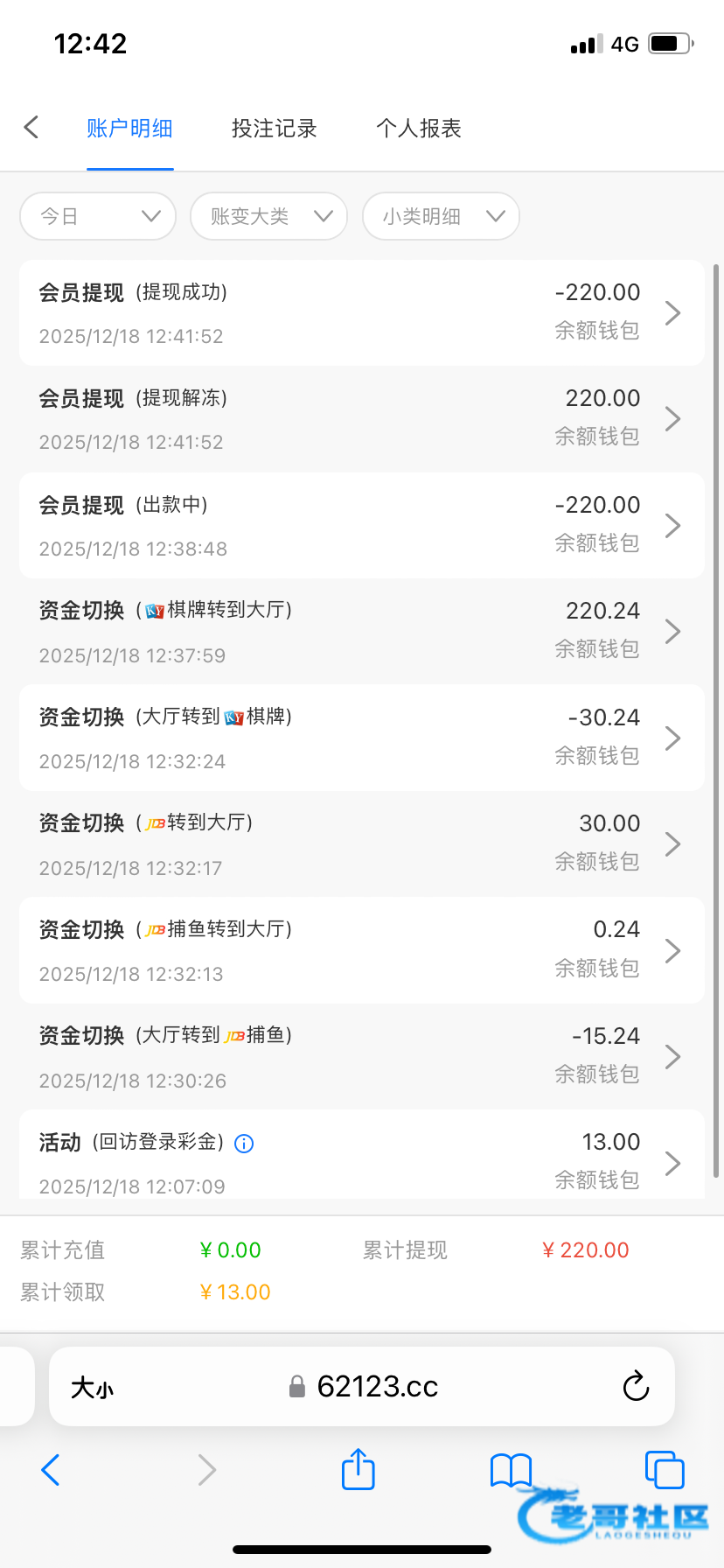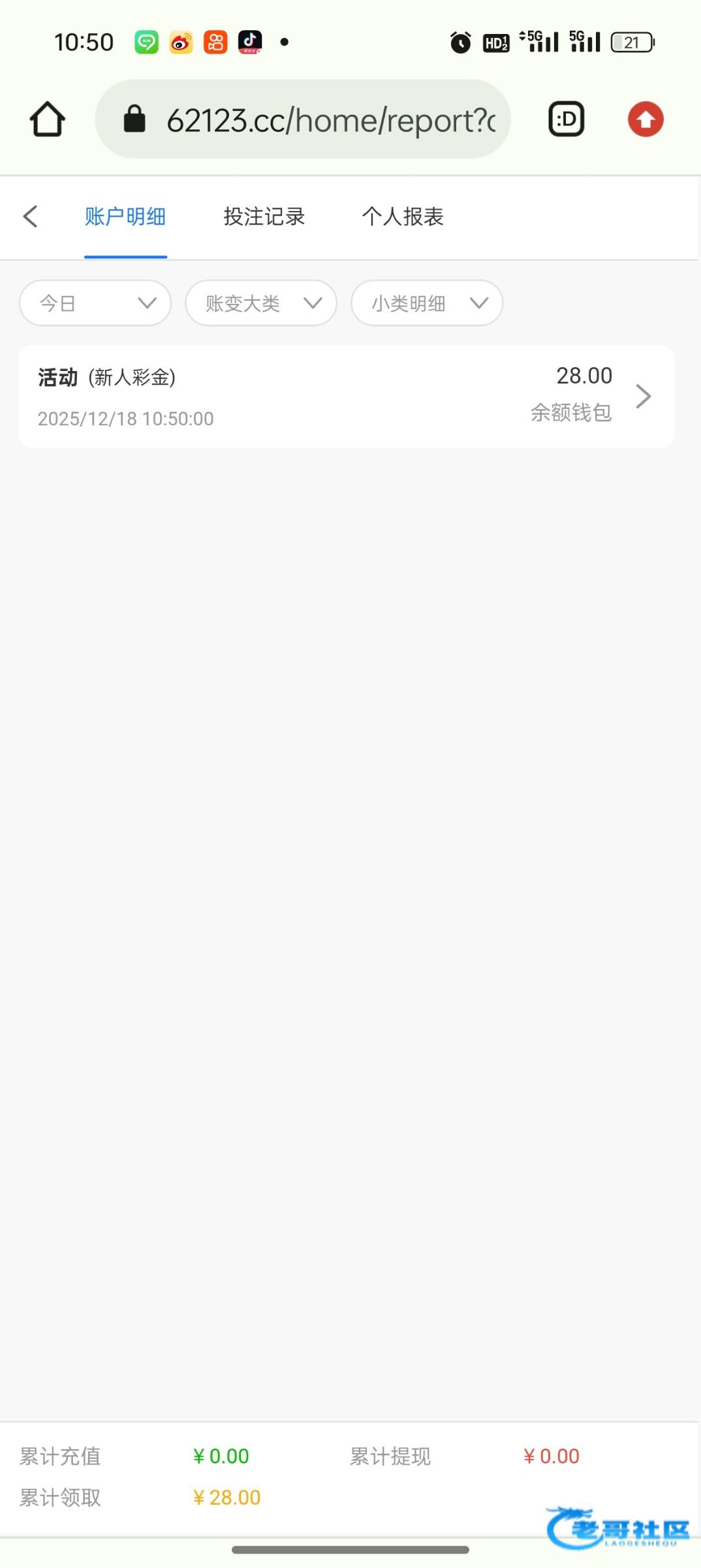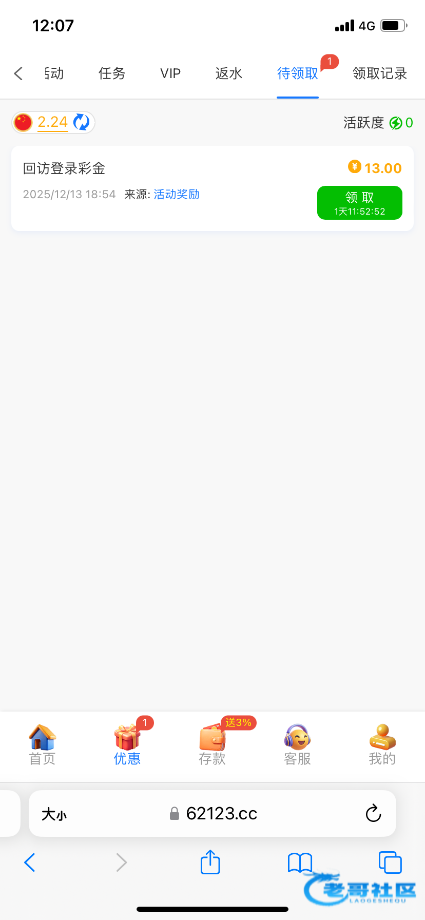 登录回去只有几毛钱,领了反水1.2,打到了118