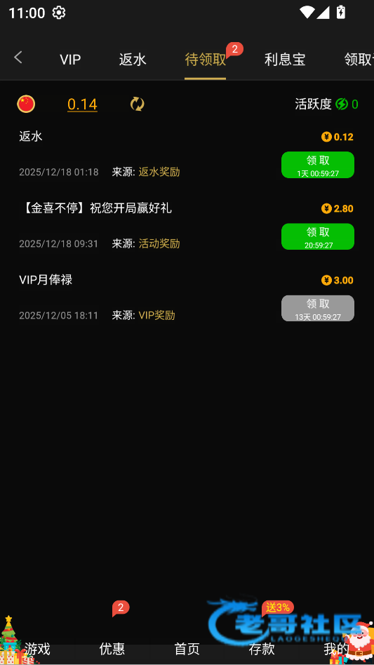 双12充值领过彩金的应该都有,可以上去看一下,我本来还以为只有一天,连续领了4天了。10起提,
