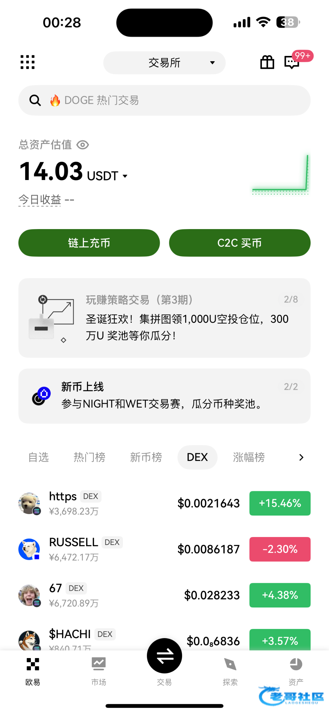 链上充币,那个地址就是你的欧意usdt地址(协议一般是trc20)
