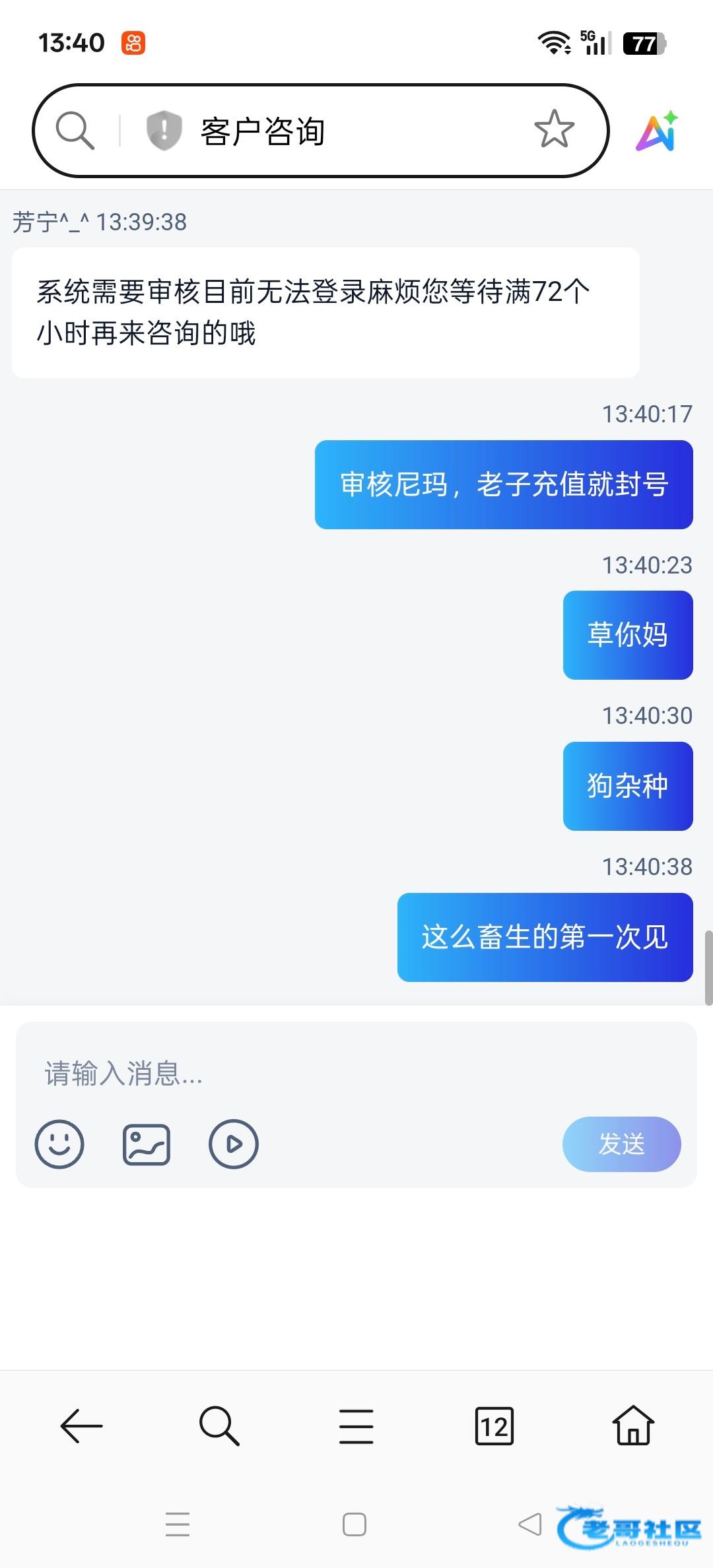 刚刚有一个人发的100送100,我才充完直接封号,真的是死妈仔来骗人,管理速速审核,肯定还有老哥被骗