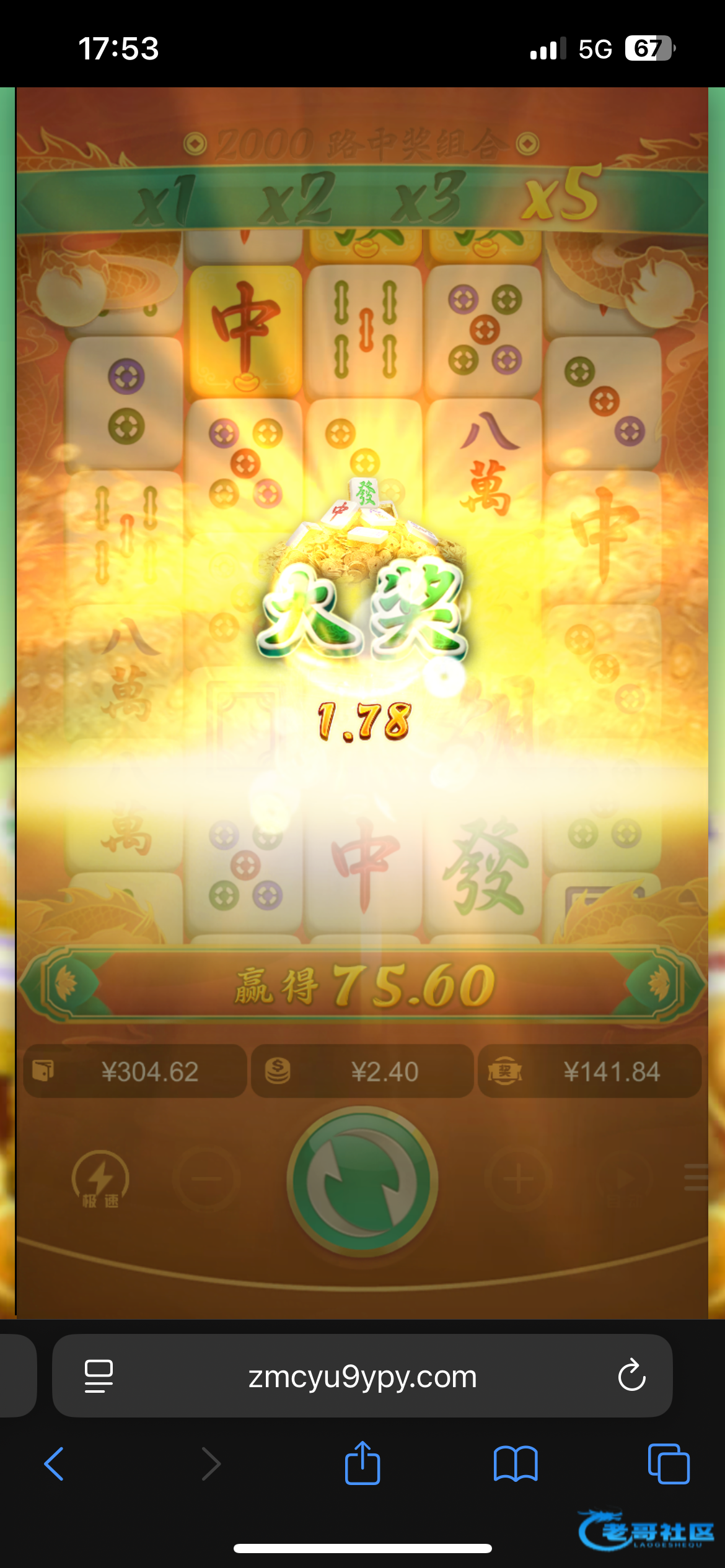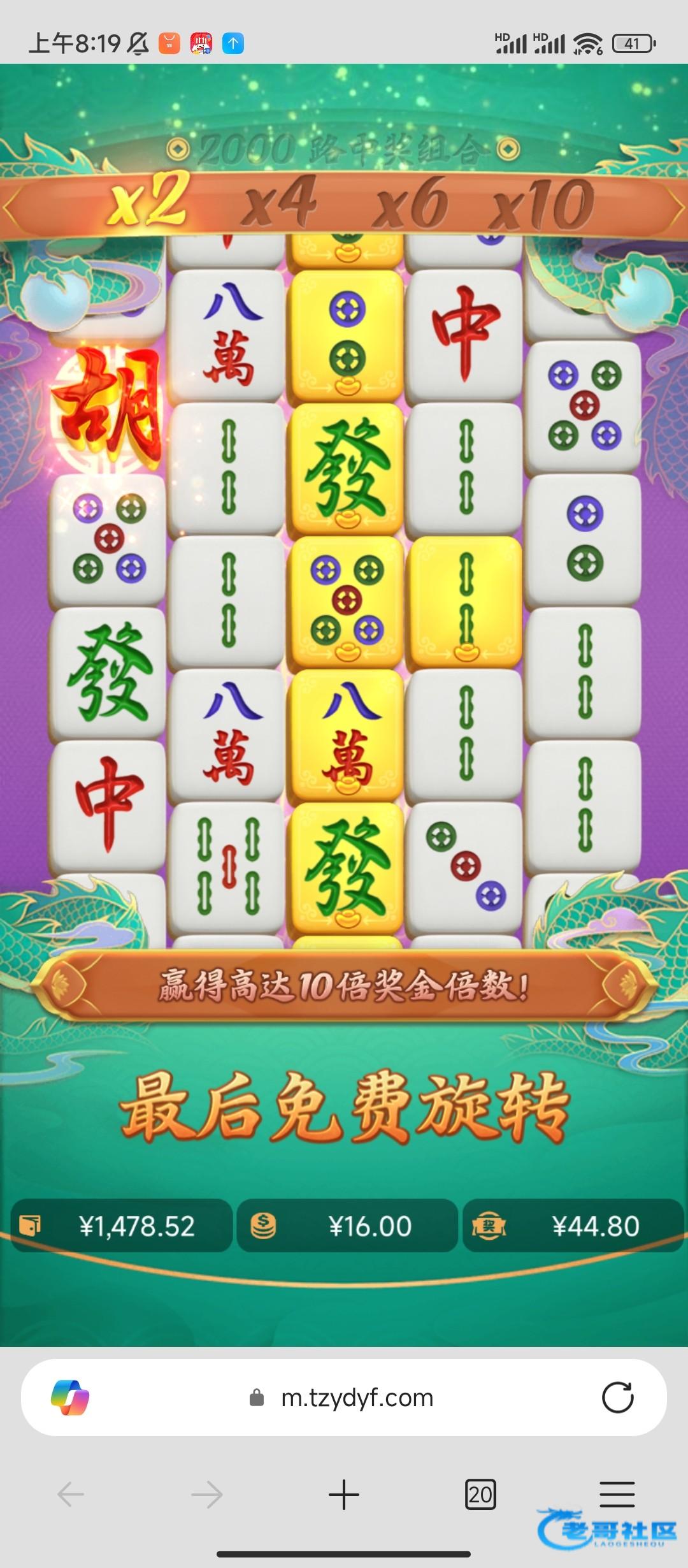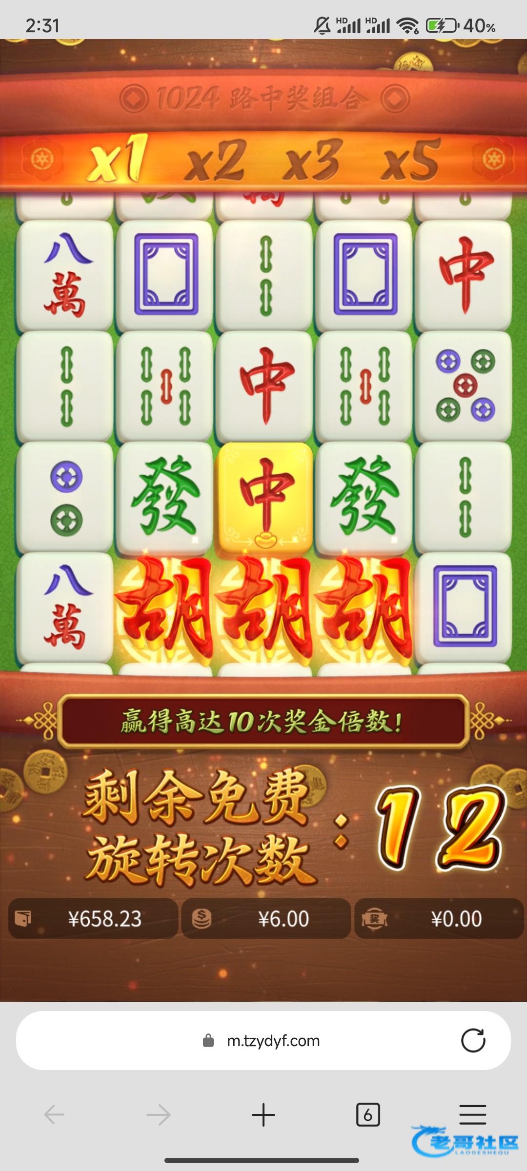还好坚持住了充了几次钱,100-100-100-200-200一共七百块钱出1398,连着胡了两个六块的一次七百多一次八百多