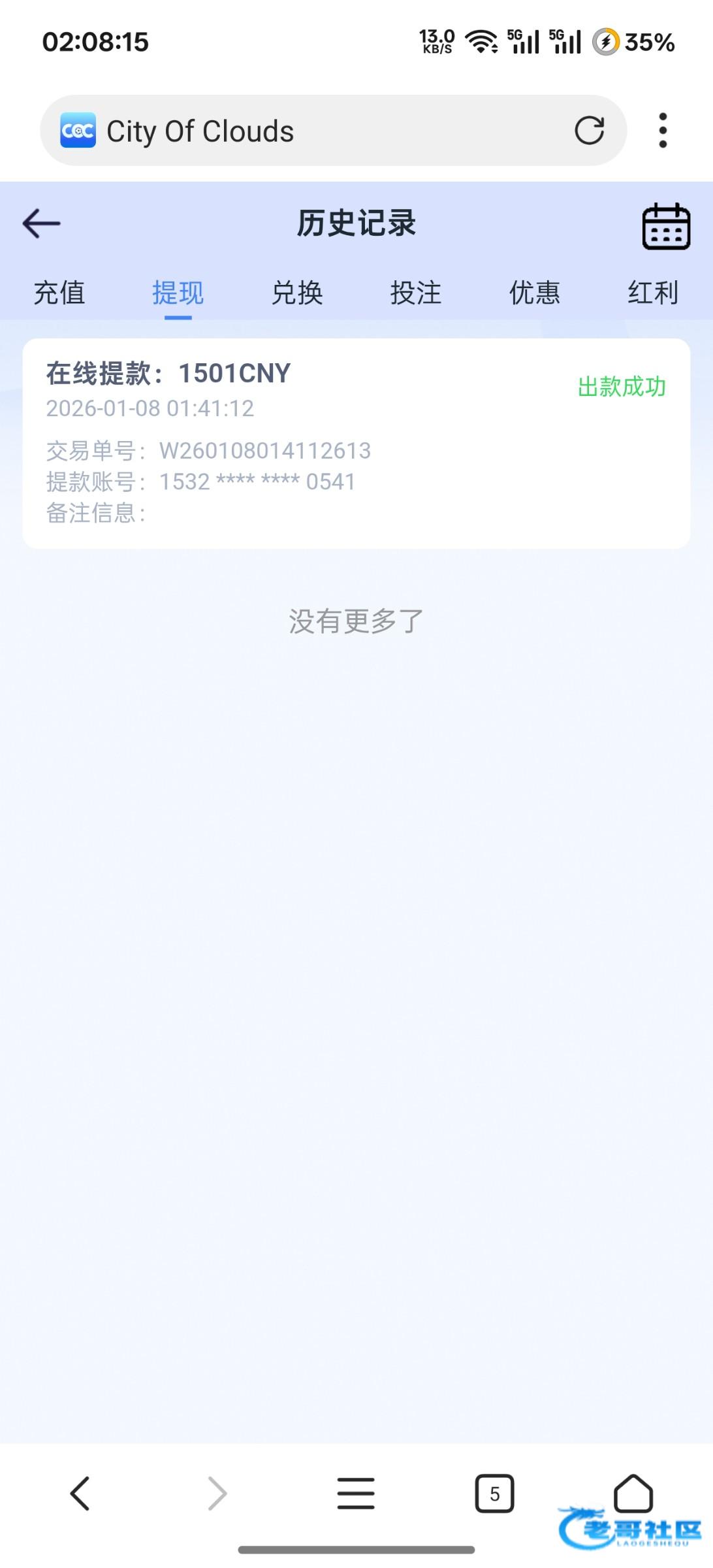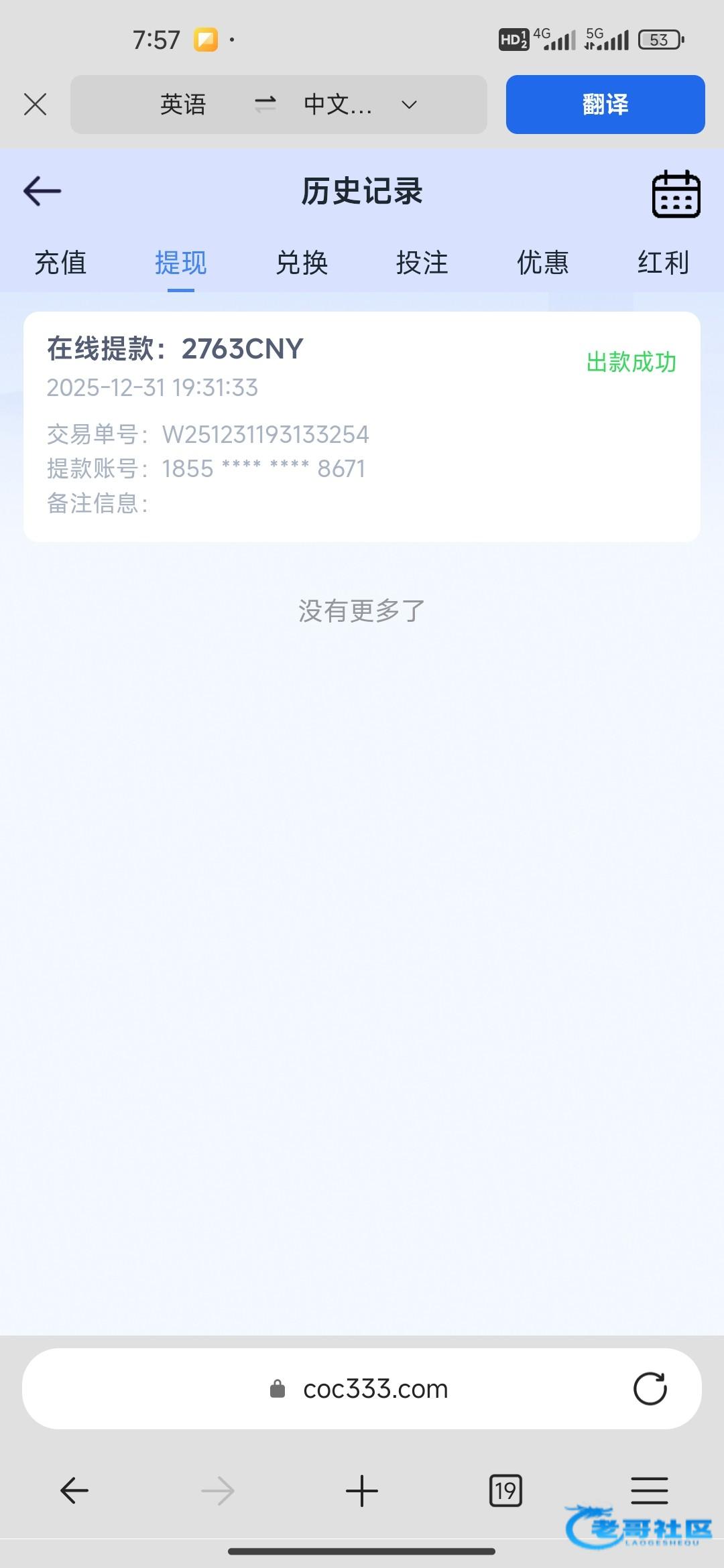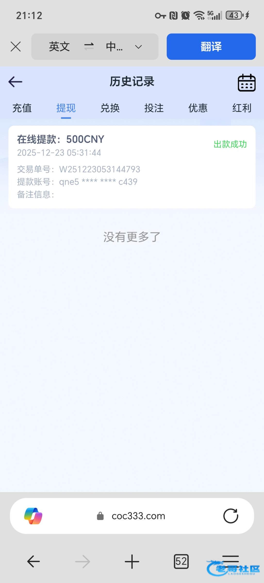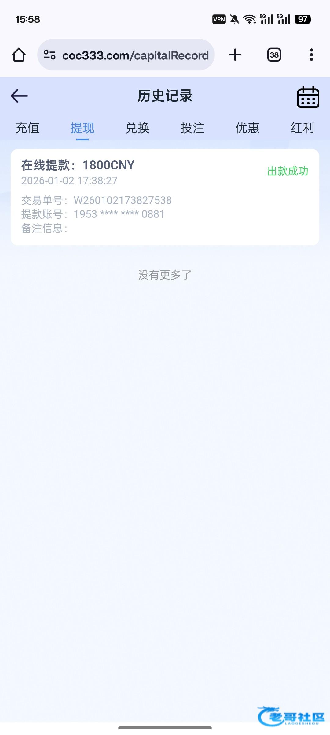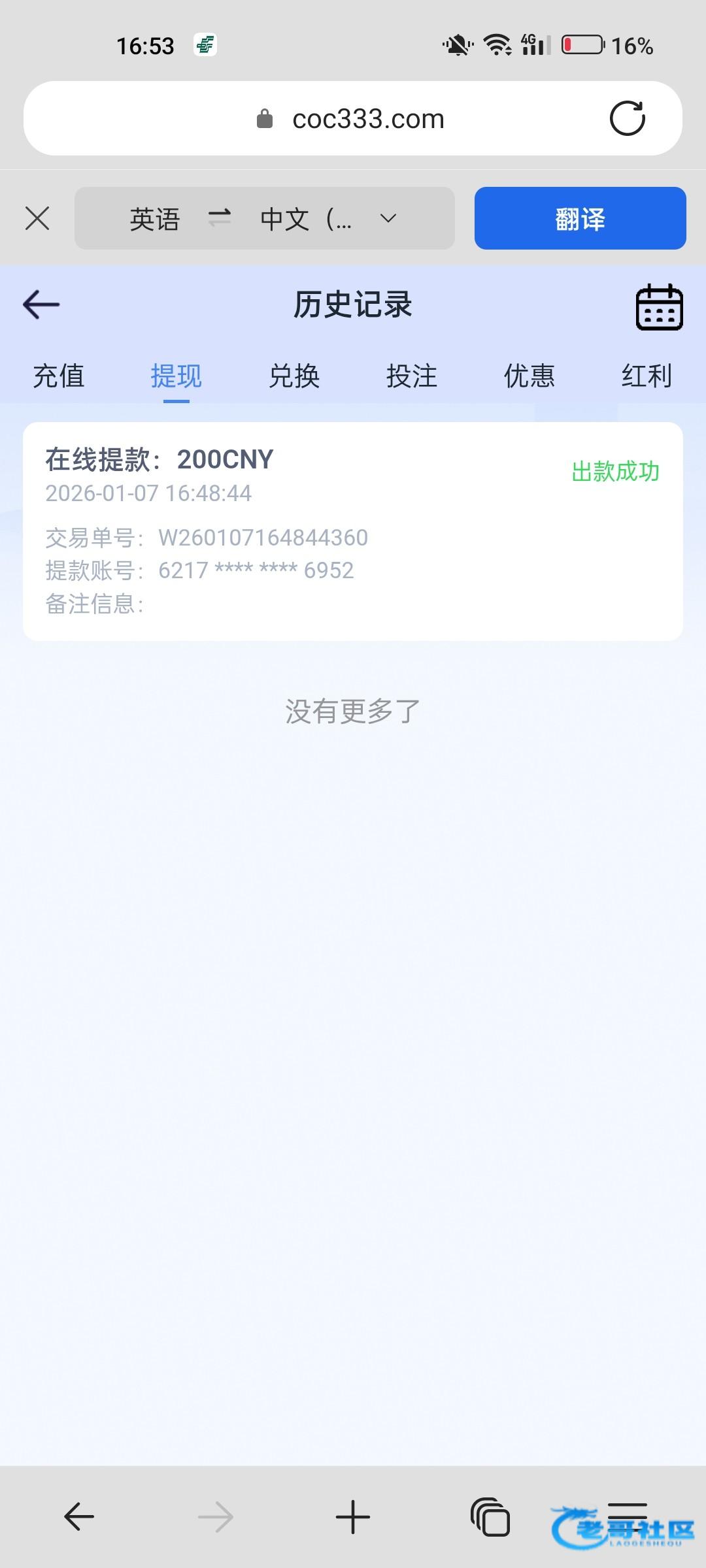 36531,关怀彩金出110,提现3分钟就到了