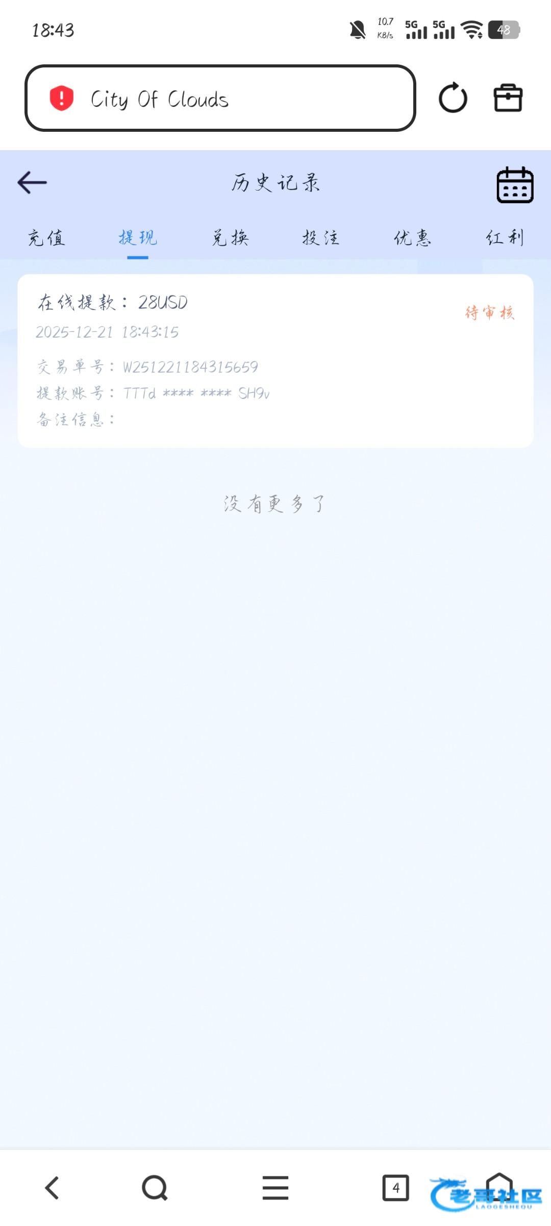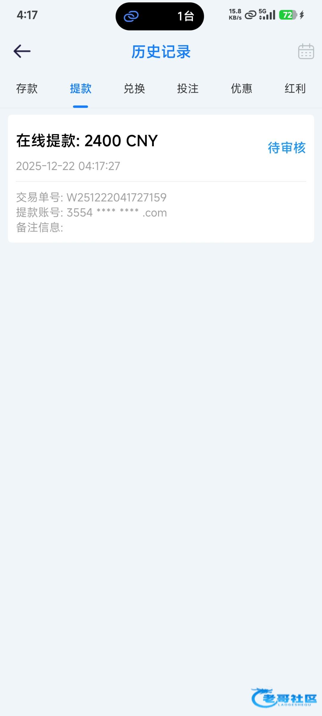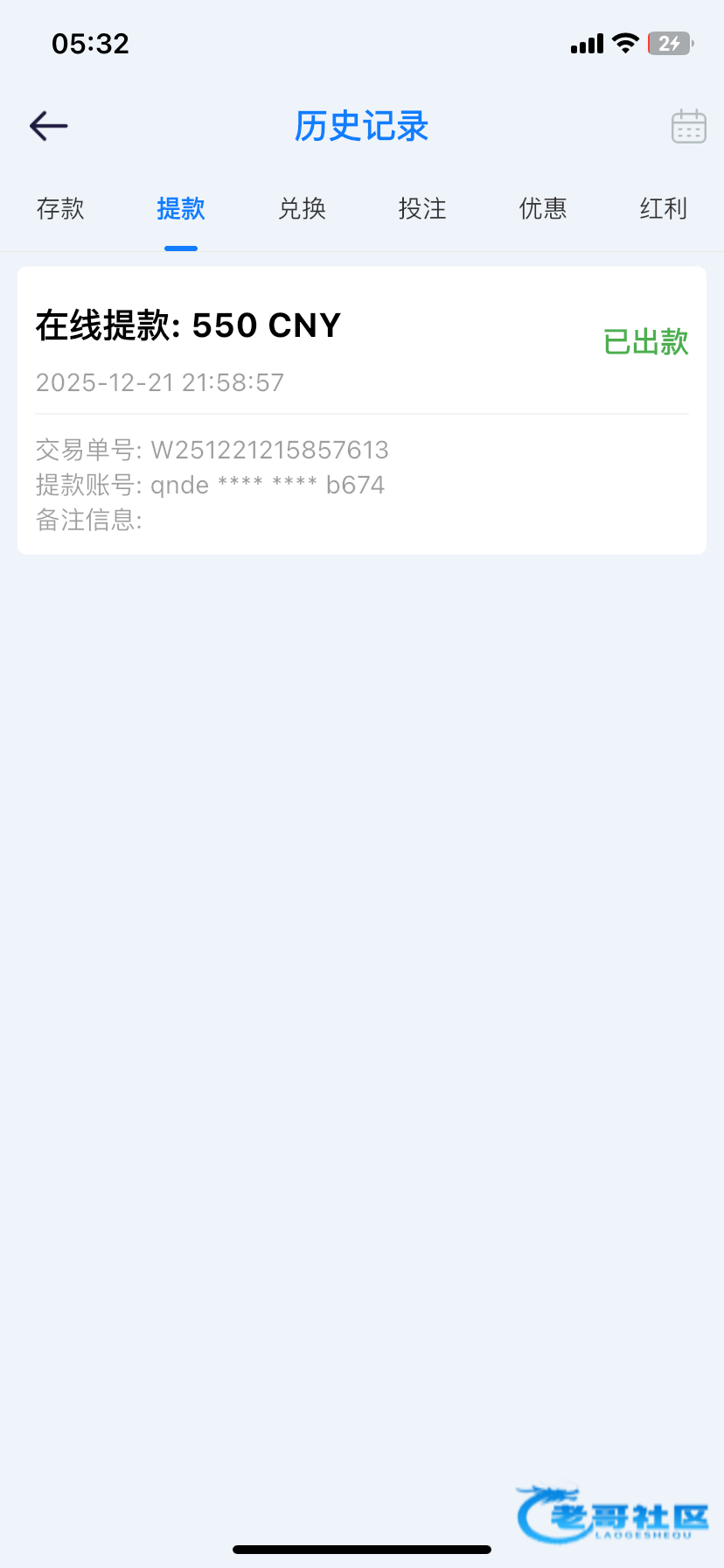 提现到账了,账号az6463147