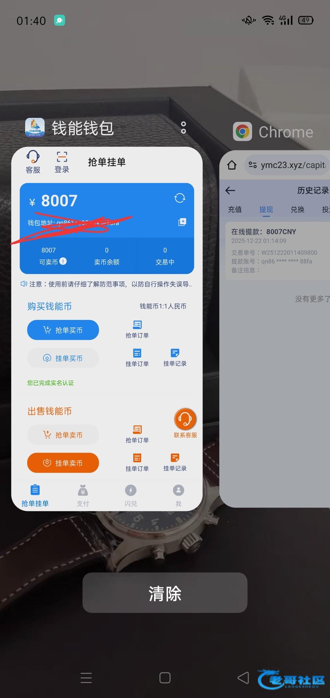 1+1,打上1500挂壁 ,流水够了本来可以包本我没提,后面回充121上去拉10,卡了两次胡,输完了,我钱包没币了,准备充700干10/20麻将,出去看哪里可以领几u,30块钱上去拉麻将2,第一次卡胡,第二次进胡,爆了3300,