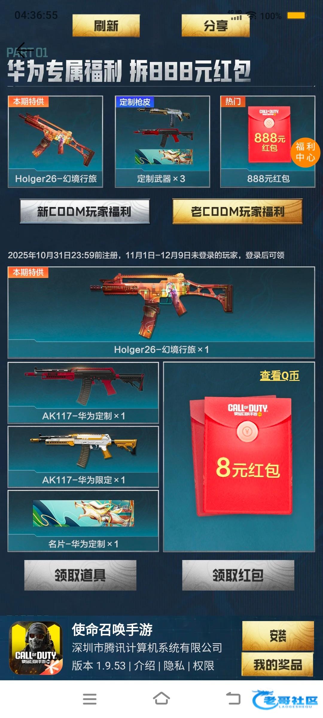 领取界面是黑色的,上次也要华为渠道注册的吧?