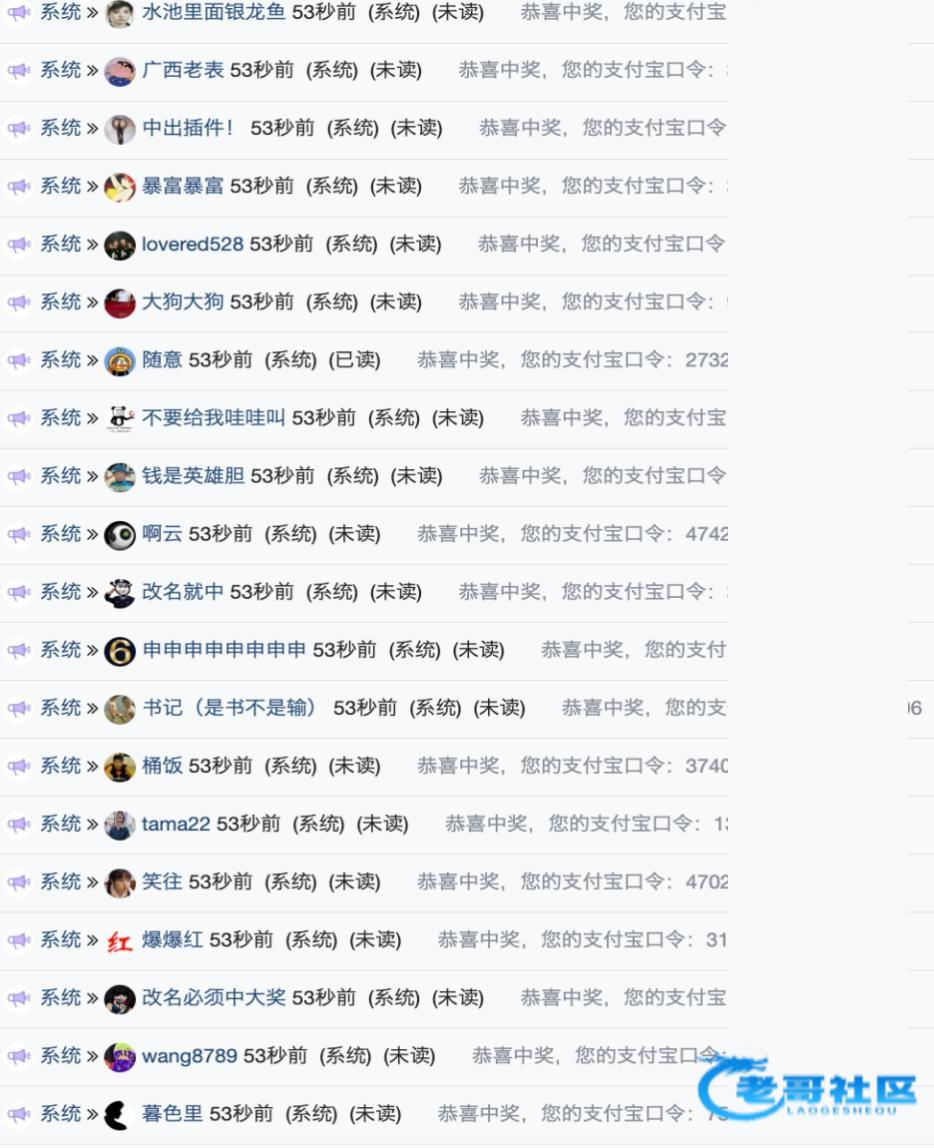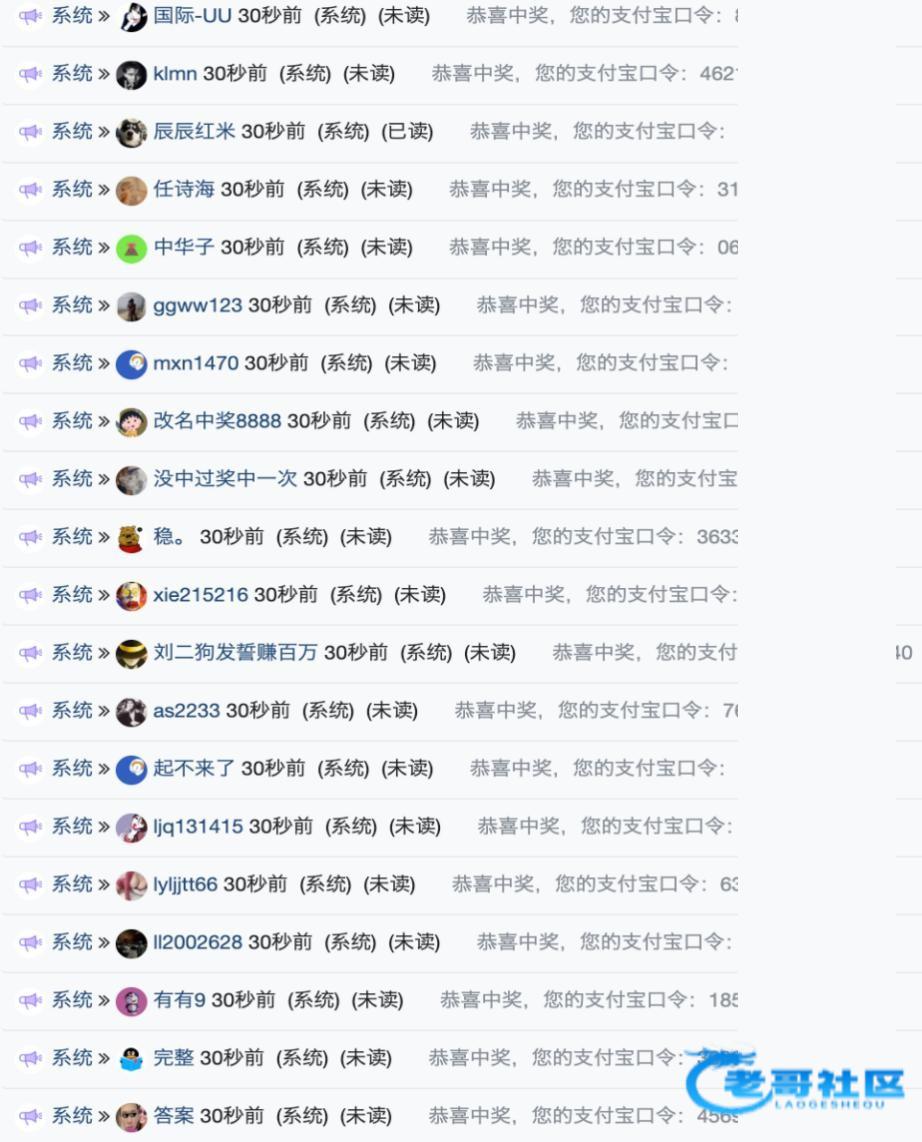 中奖的已全部派发,往后抽奖中奖的,不用在私信找我申请了,论坛点击消息,自助领就行,领到了自觉到交流群反馈一下感谢各位,祝全体老哥们冬至安康,福气满堂!