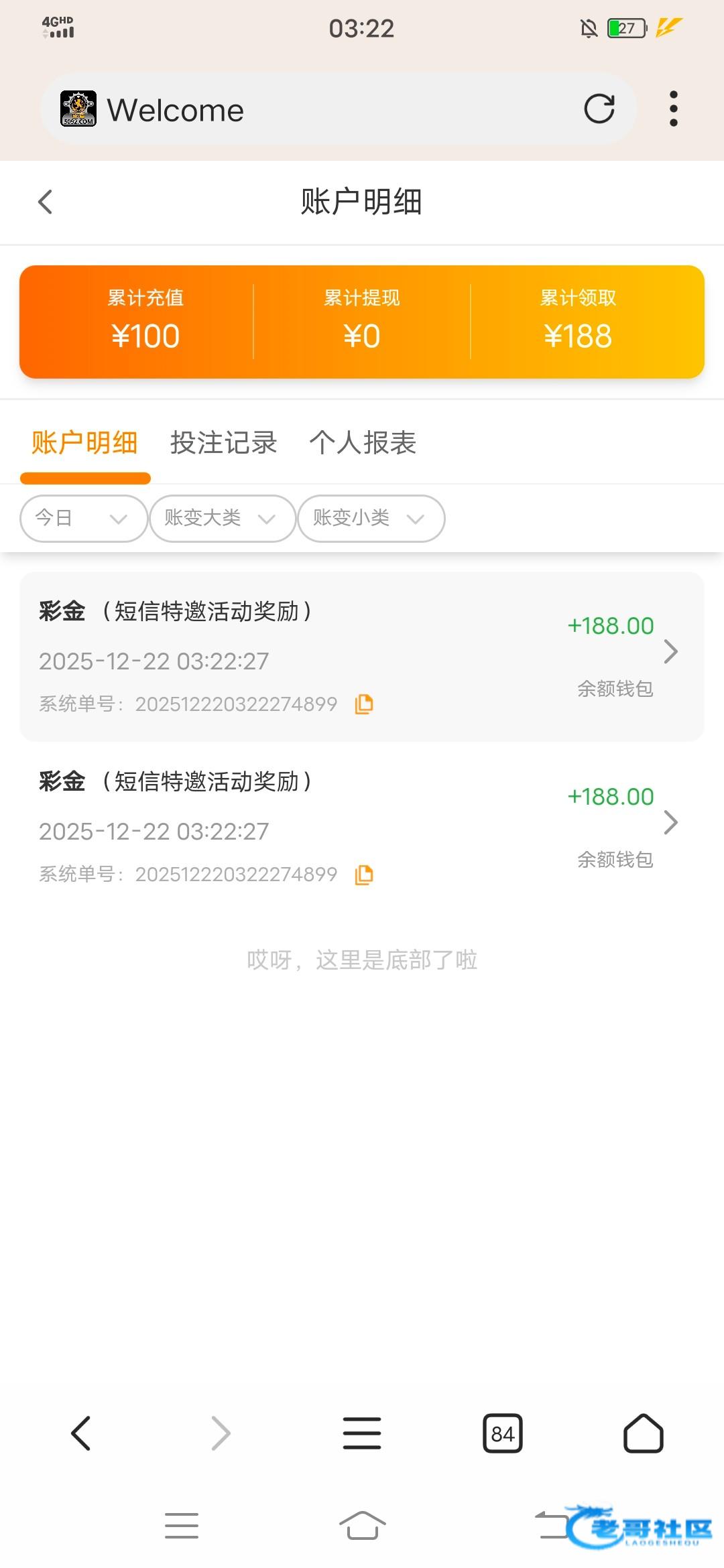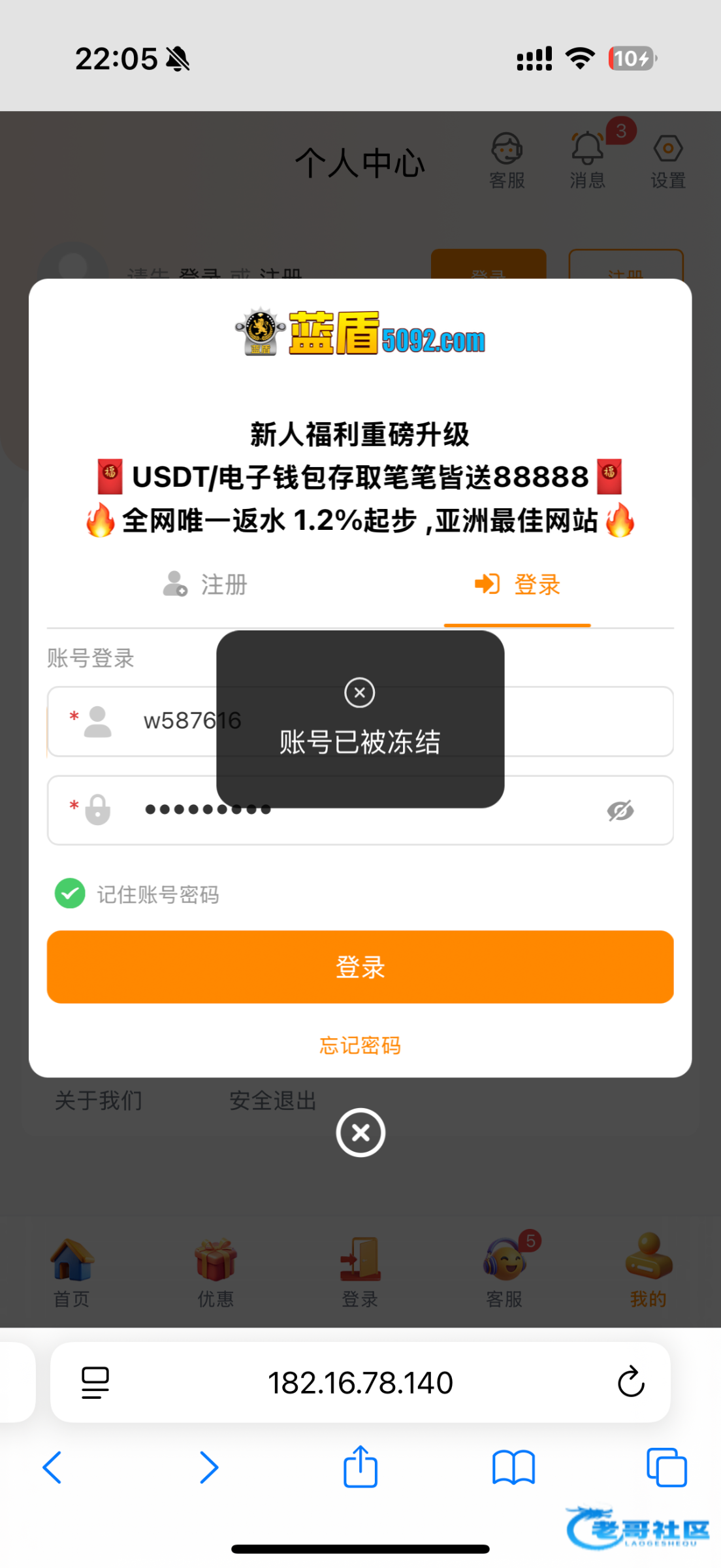 升级之前的原账号给删了,今天原账号竟然可以登机了,然后领了188,网址5092.com