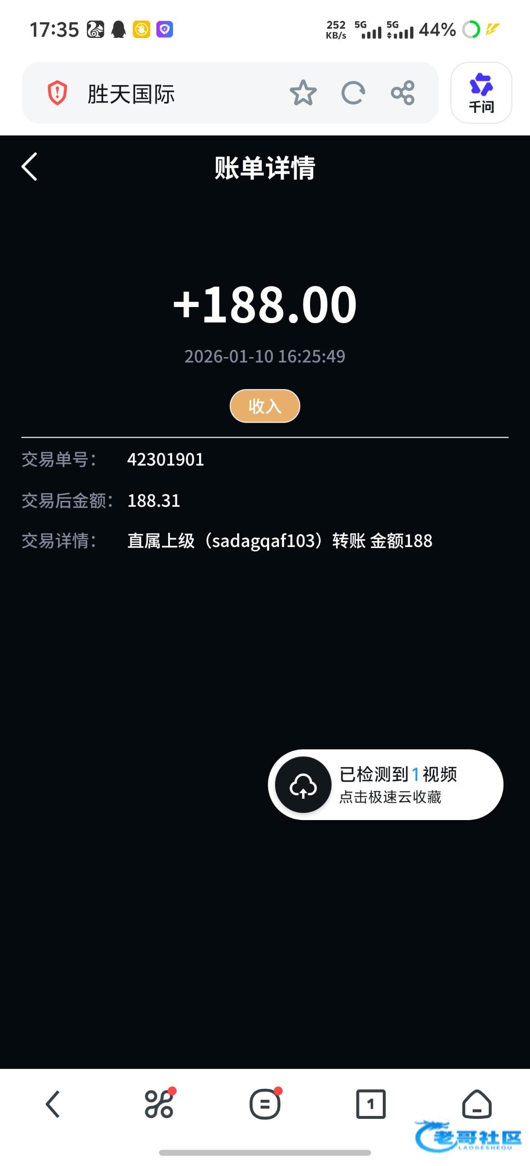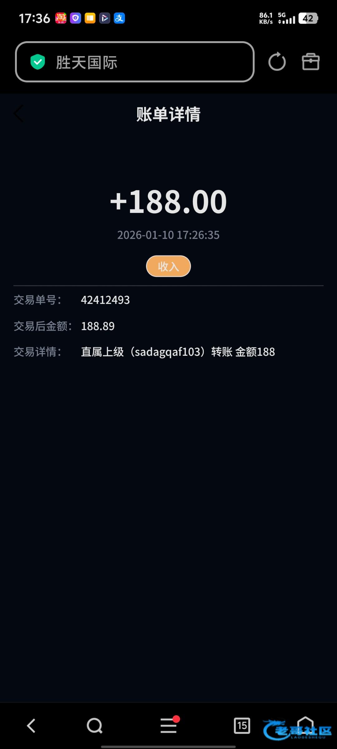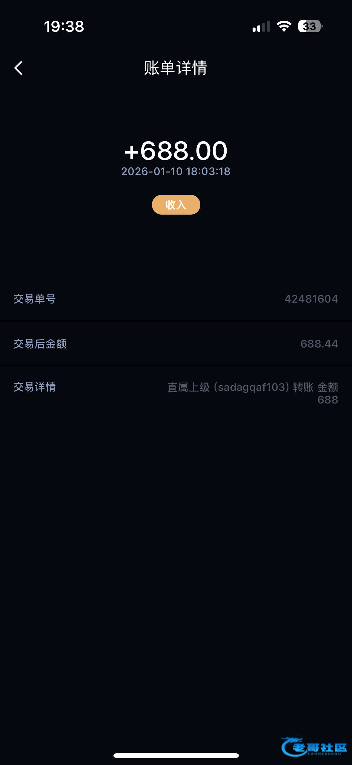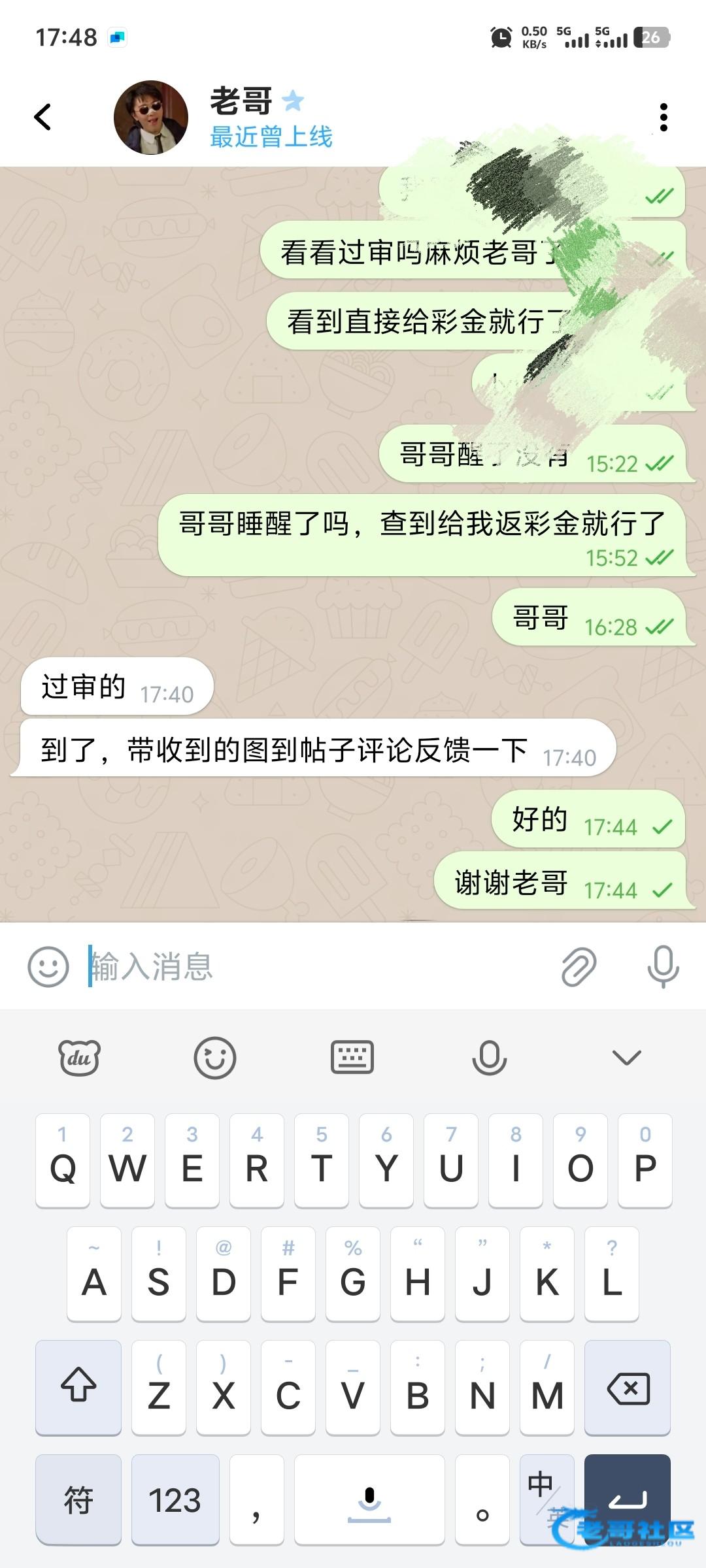 收到老哥返现 支持老哥