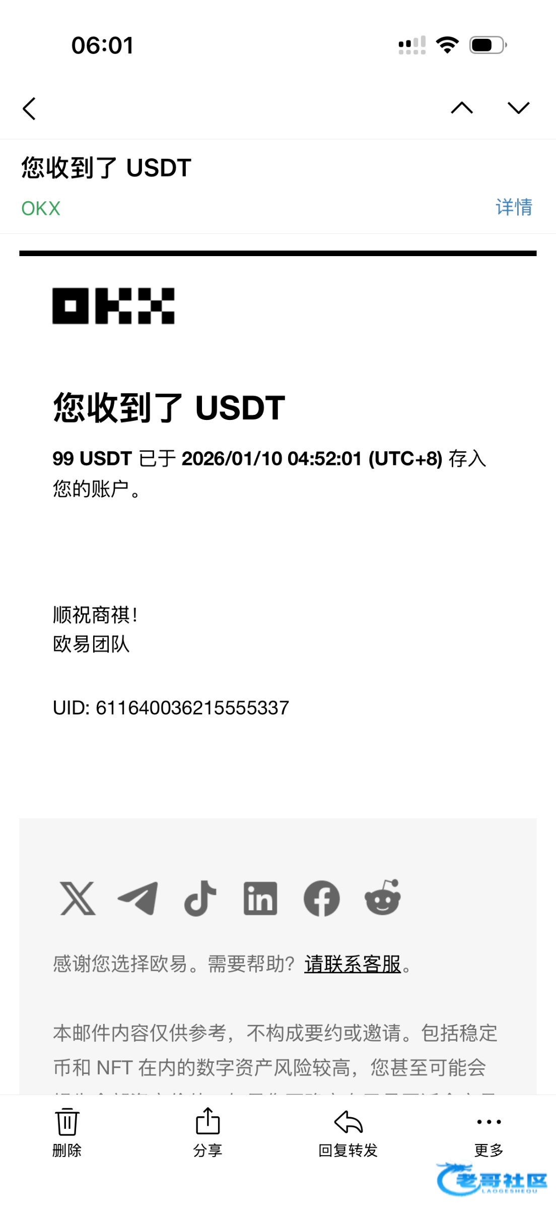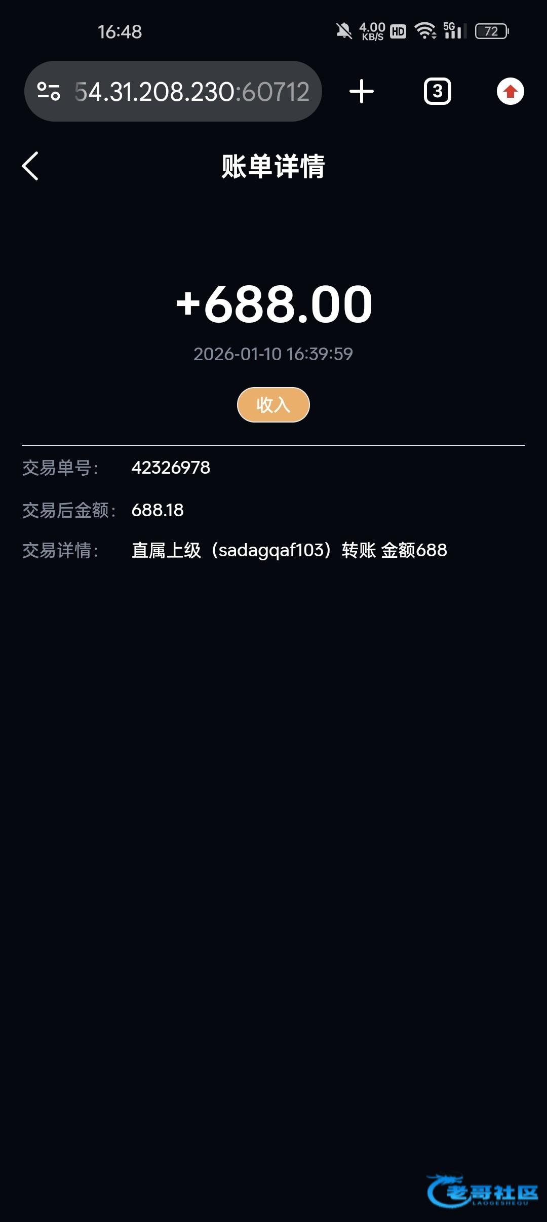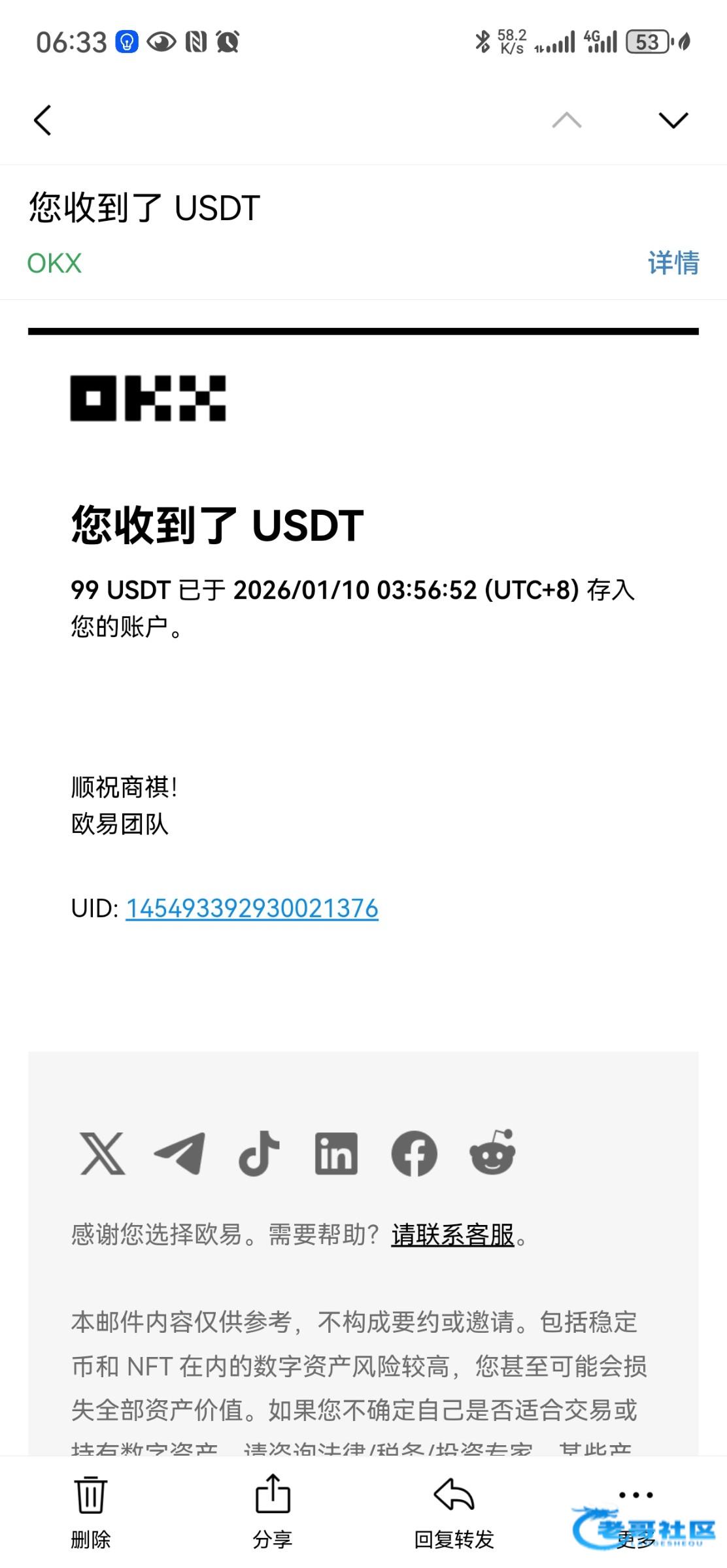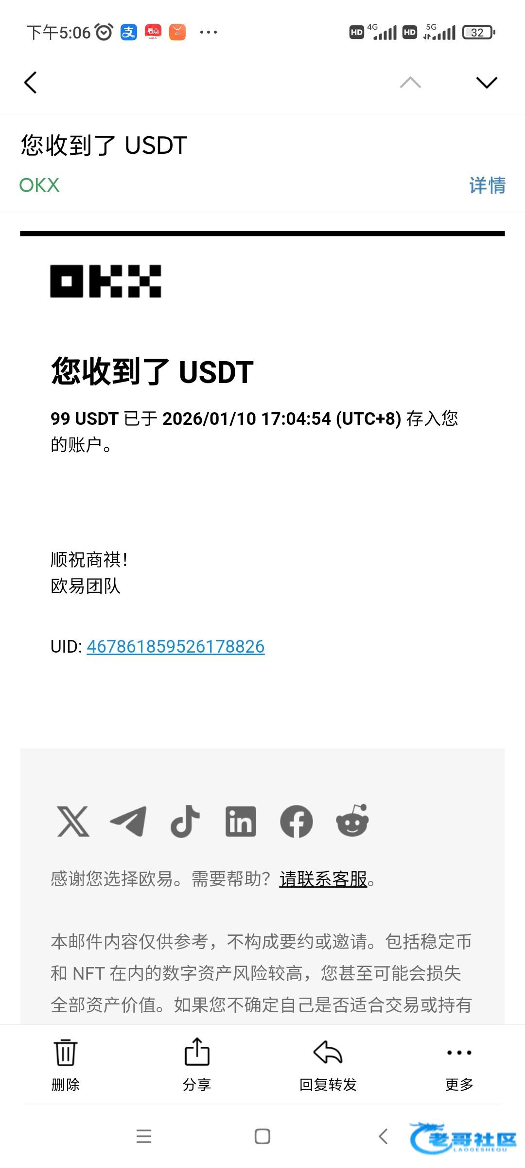 收到老哥返现 支持老哥