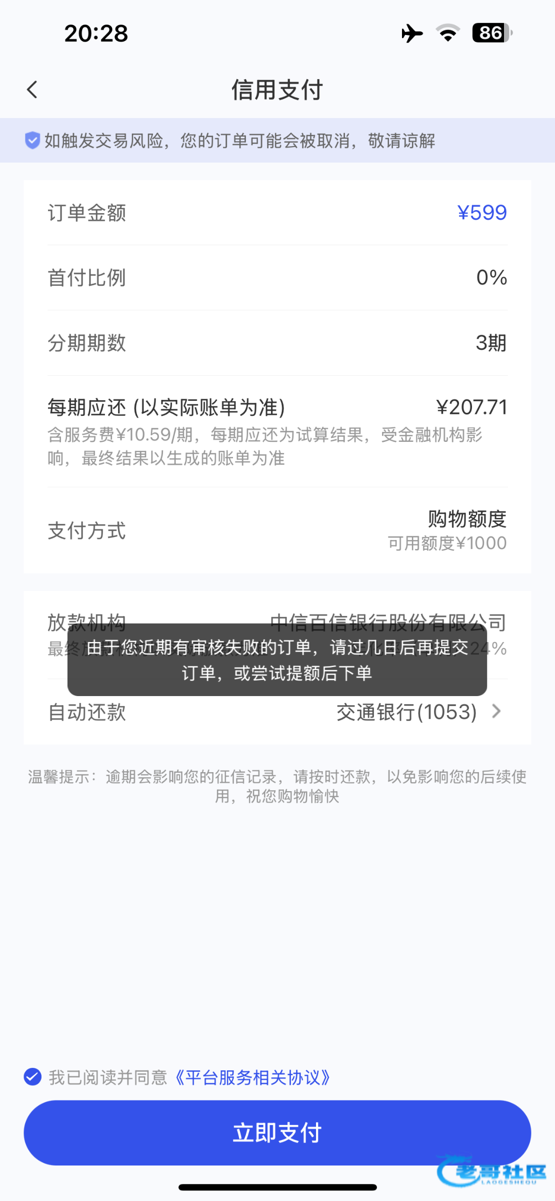 购物额度没什么用 审核不通过
