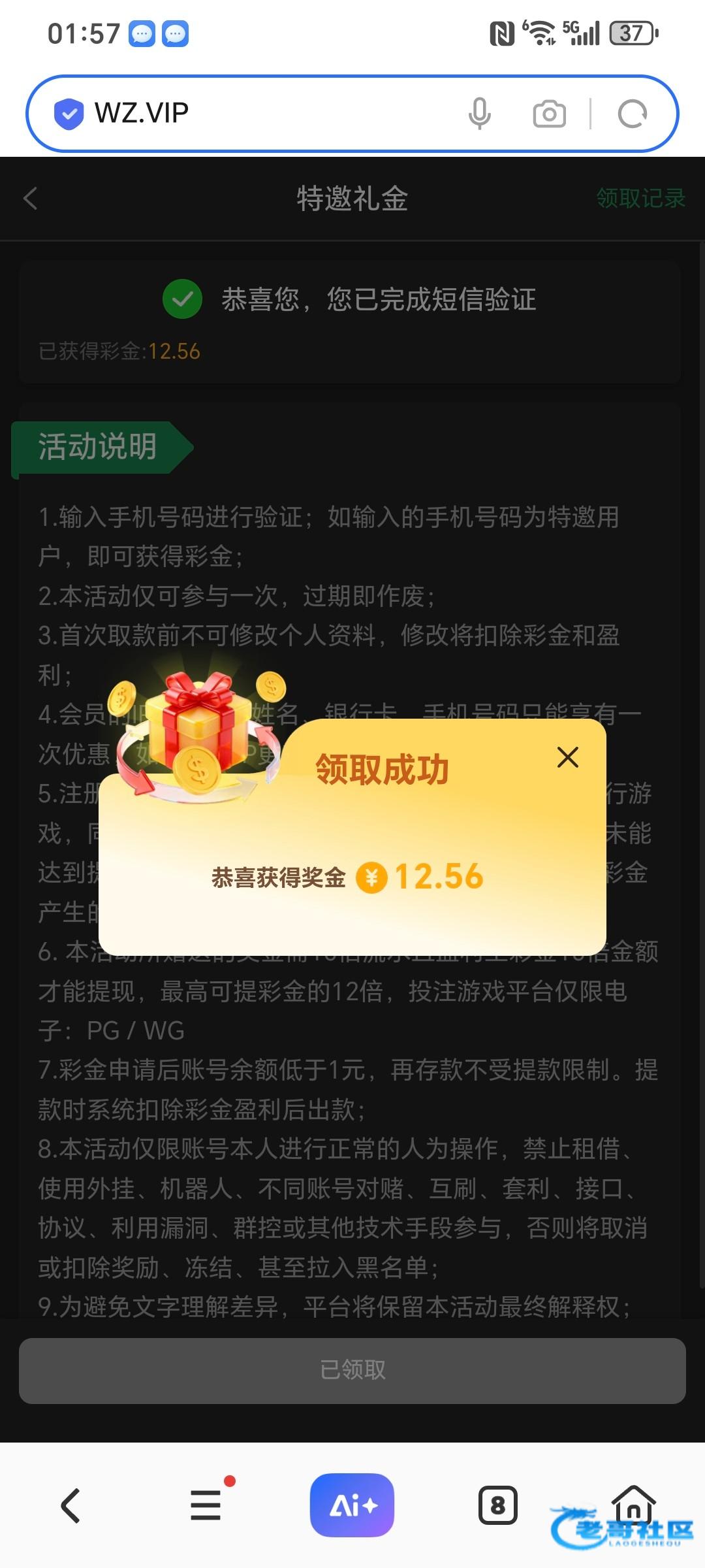 短信网址55571.app 图片有官方网址!特邀没领到也别骂!没打出来出款自测!禁止充值!