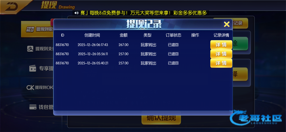 无聊看见有老哥发帖就上去充值了一百,提个两百来块秒退回,之前还提现过